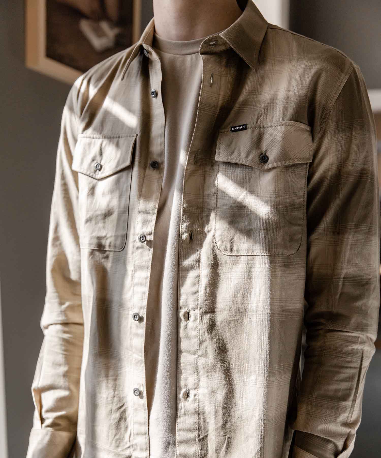 Ook deze zomer hebben we een paar hele toffe western shirts en spijkerjassen van G-star. Zo zit er nu een hele chique uitgevoerde western flanel in de voorjaarscollectie, je ziet hem hieronder bij Quint. Het silhouet valt uitstekend voor een slanke man doordat deze mooi rond uit is gesneden aan de onderkant. Ook vind je zoals altijd weer een stoer denimjack van G-star in onze voorjaarscollectie. Als echt jeansmerk mag een spijkerjas nooit ontbreken in de collectie van G-star raw.