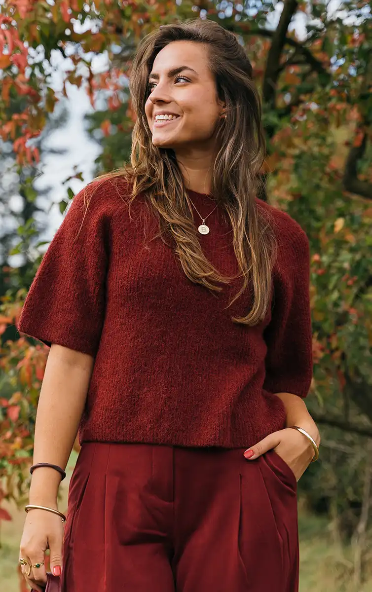 Bliss in bordeaux outfit