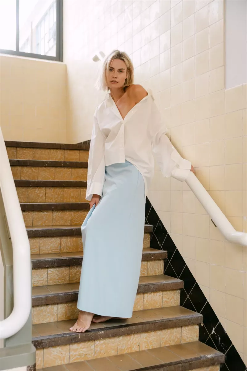 De Mina blouse is een prachtige off-white katoenen blouse met een tijdloze uitstraling. Extra mooi boven de Monday skirt, maar net zo stijlvol op een jeans of pantalon.