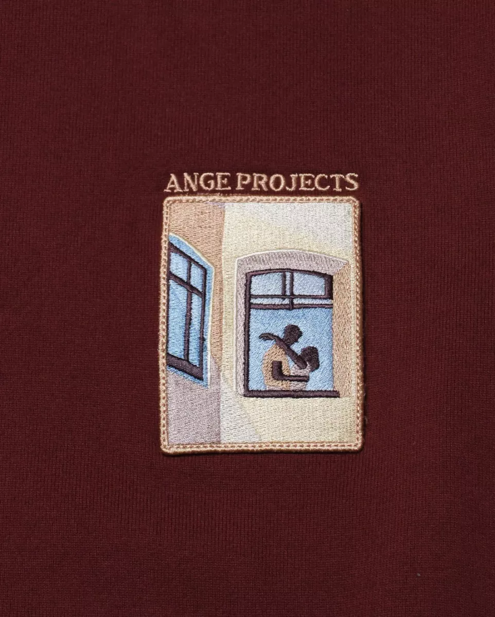 Ange projects – Day window patch t-shirt – 26-SS-066 – Bordeaux red