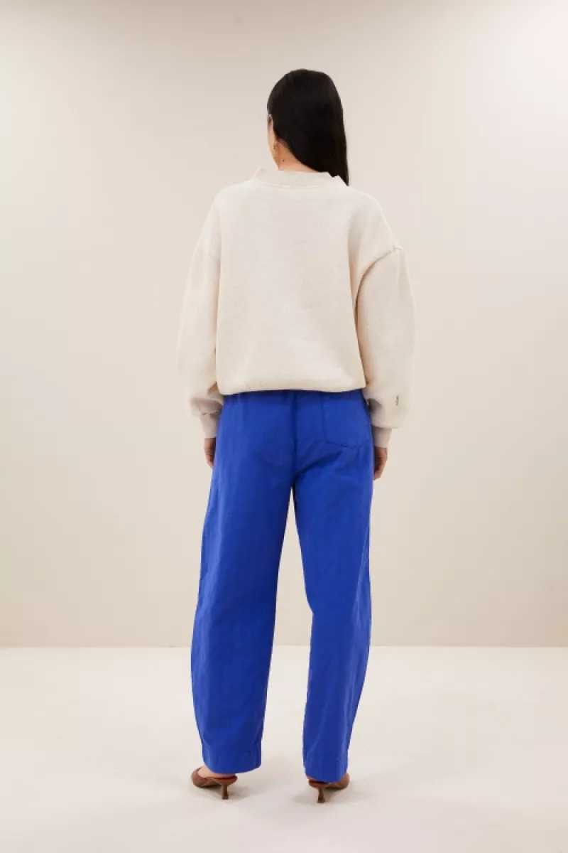 De momo sweater is een casual trui met een comfortabele pasvorm en verlaagde schoudernaden, perfect voor een ontspannen, alledaagse look. De v-halslijn en het subtiele borduurwerk op de mouw geven de sweater een stijlvolle, verfijnde touch. Met lange mouwen en een regular fit valt dit model op maat en is het ideaal voor dagelijks gebruik.
