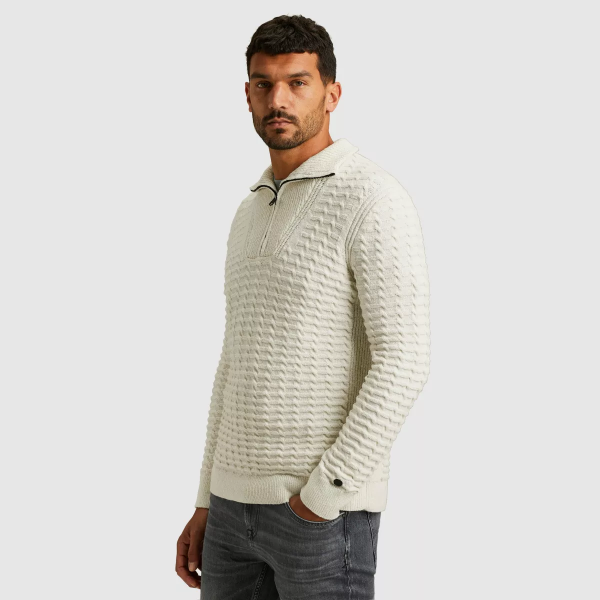 CAST IRON – Half zip collar cotton boucle – CKW2510354 – 9001 Vaporous gray