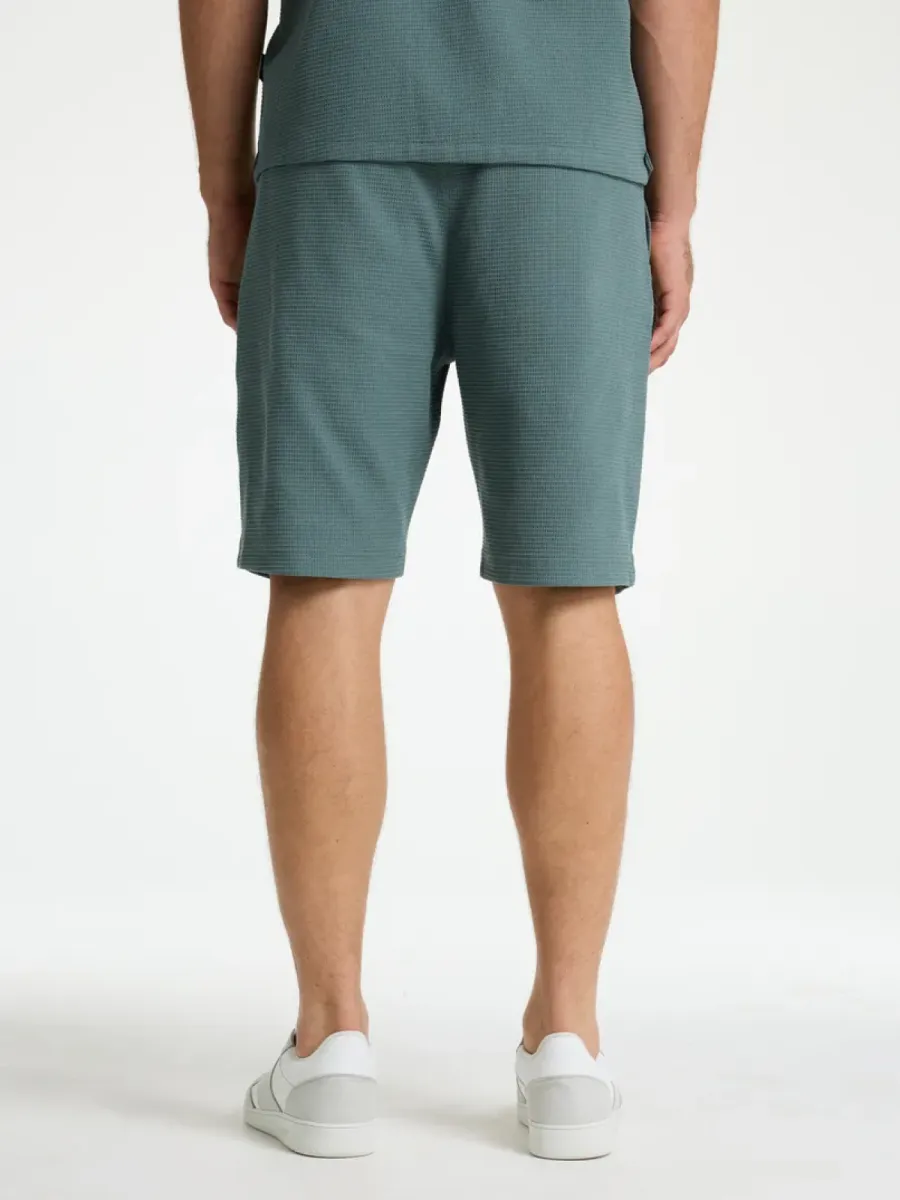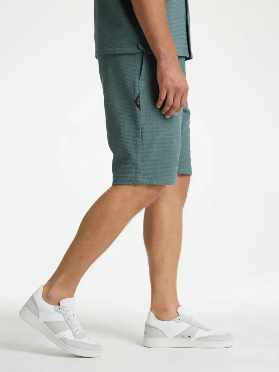 De Stone.S Structure is een korte broek die gemaakt is van 87% katoen en 17% polyester en door de speciale weeftechniek een waffle structure heeft. Deze comfortabele korte broek heeft een regular fit en hij is voorzien van twee steekzakken en een achterzak met klein CHASIN’ logo. De Stone.S Structure is gemakkelijk perfect op maat te maken met de elastische band en trekkoordsluiting. Combineer hem met bijpassend overhemd en je outfit is compleet.