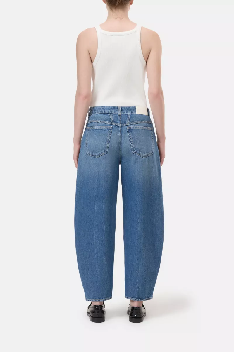 Onze nieuwe 5-pocket jeans in een casual, moderne barrel fit met een middelhoge taille en korte pijpen. Gemaakt in Italië van duurzaam blauw denim (340 gram) met een zout-en-peper effect en een verwassen look. Onderdeel van de A BETTER BLUE Eco-Denim lijn, die het gebruik van chemicaliën, water en energie bij de denimproductie vermindert.