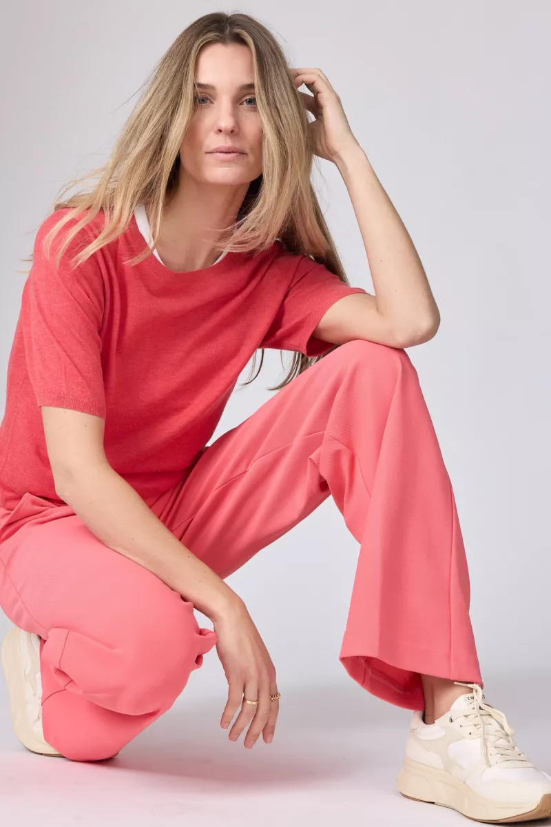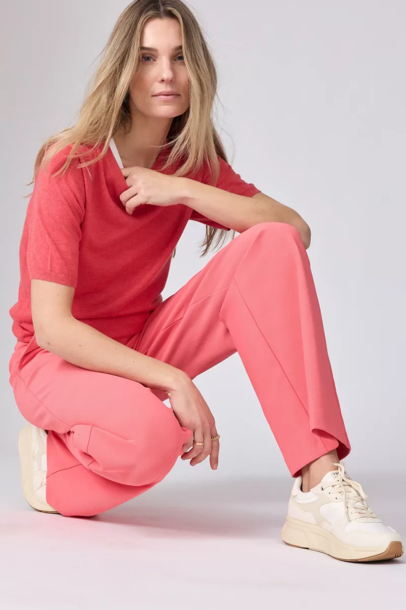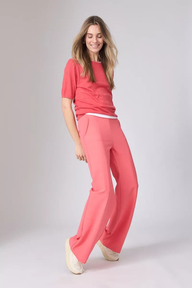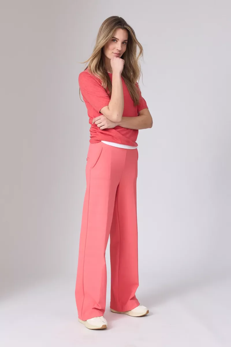 De Lilly Pants Wide Uni Sport is een comfortabele en moderne broek met een sportieve, verfijnde uitstraling. De middelhoge taille en brede, elastische tailleband zorgen voor een perfecte pasvorm en optimaal draagcomfort. De broek sluit mooi aan bij de heupen en valt vervolgens los langs het been met rechte, soepel vallende pijpen voor een elegant silhouet.