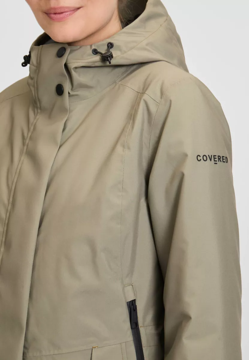Softshell jas van Covered met een verborgen drukknoop- en ritssluiting, capuchon voorzien van drawstring, ritszakken, klepzakken met drukknoop en windvangers in de mouwen. Materiaal: Polyester 100%