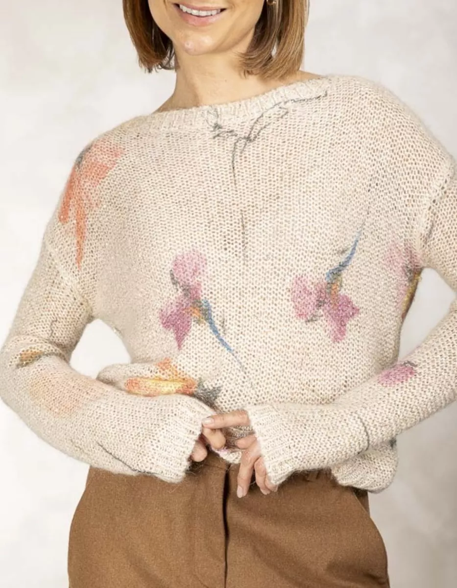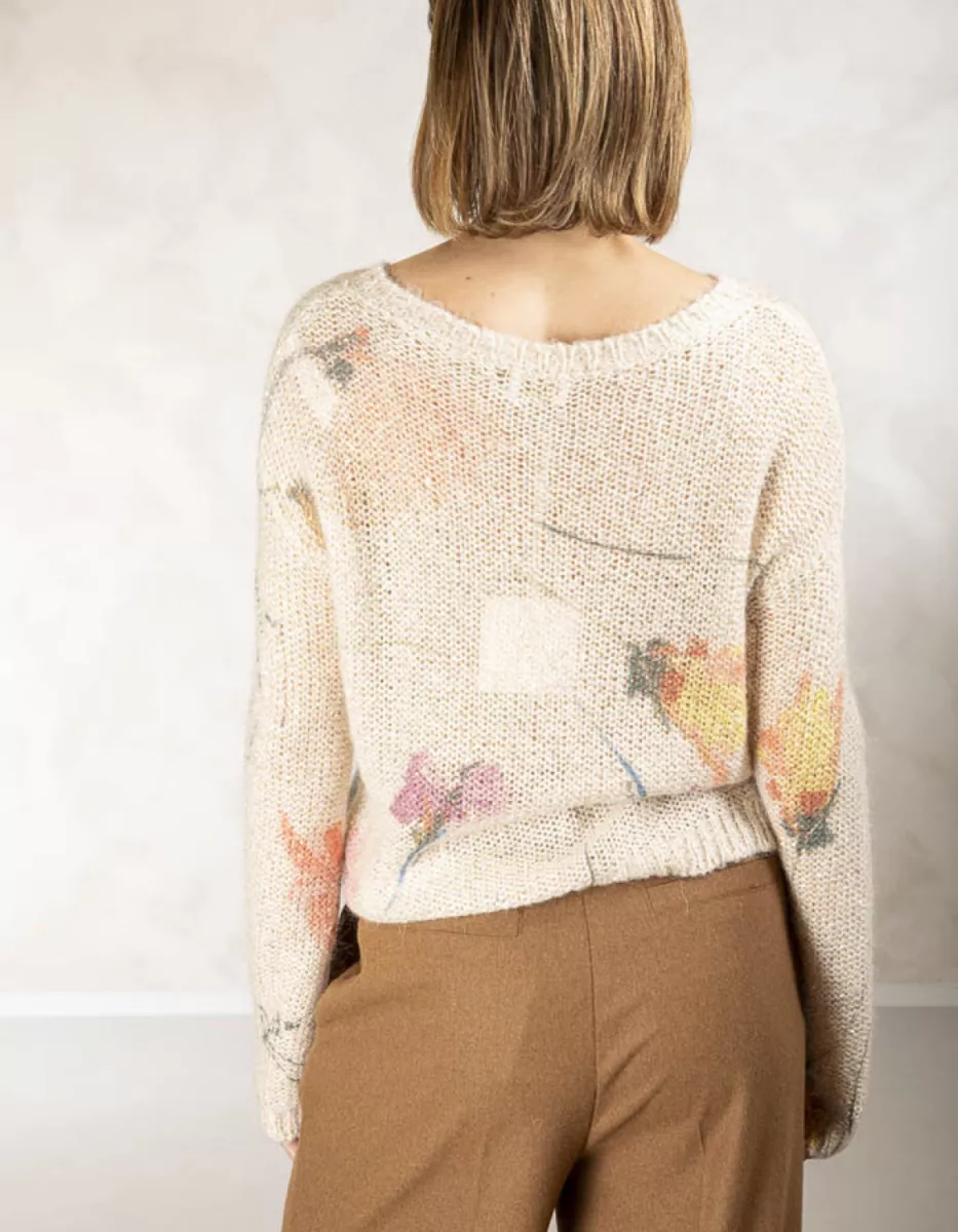 Due Amanti – Printed round neck pullover – Rews – Painted flowers