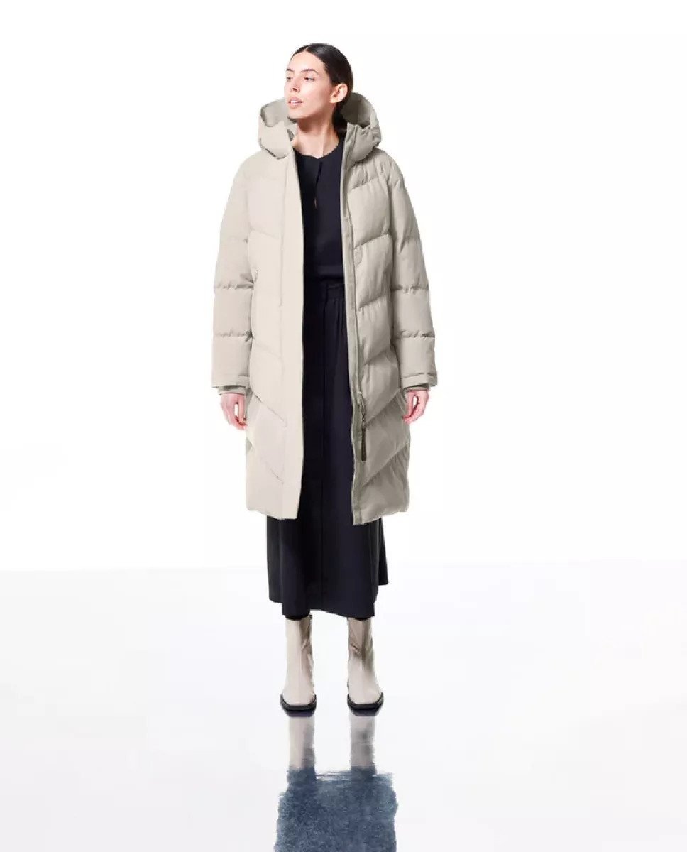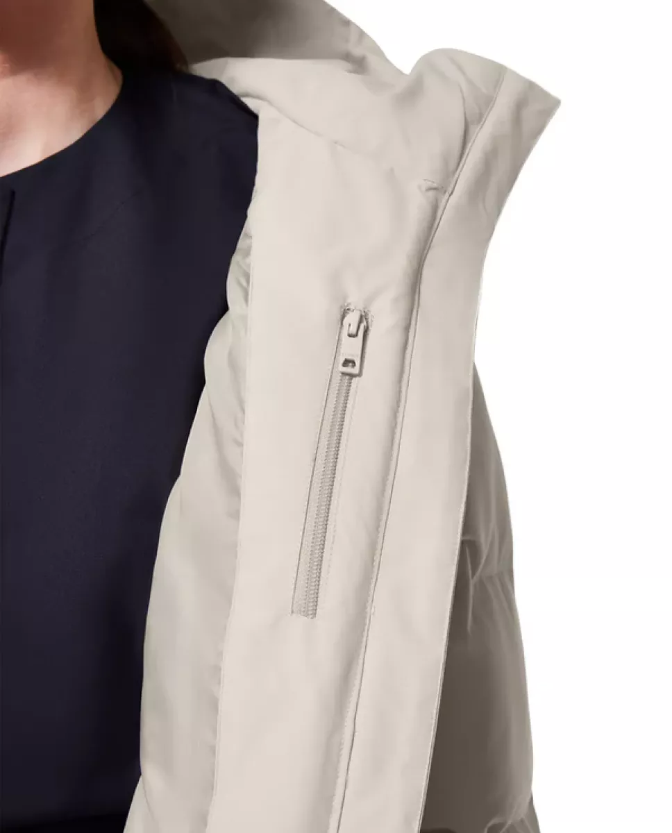 The NALANI is a long puffer jacket by ELVINE for women. The jacket is made of windproof & water-repellent material. Features of the NALANI jacket are the hood, side pockets and inside pocket with zipper and on the front is a zipper with a magnetic flap closure. The jacket is made of flexible fabric with a dry, matte finish.