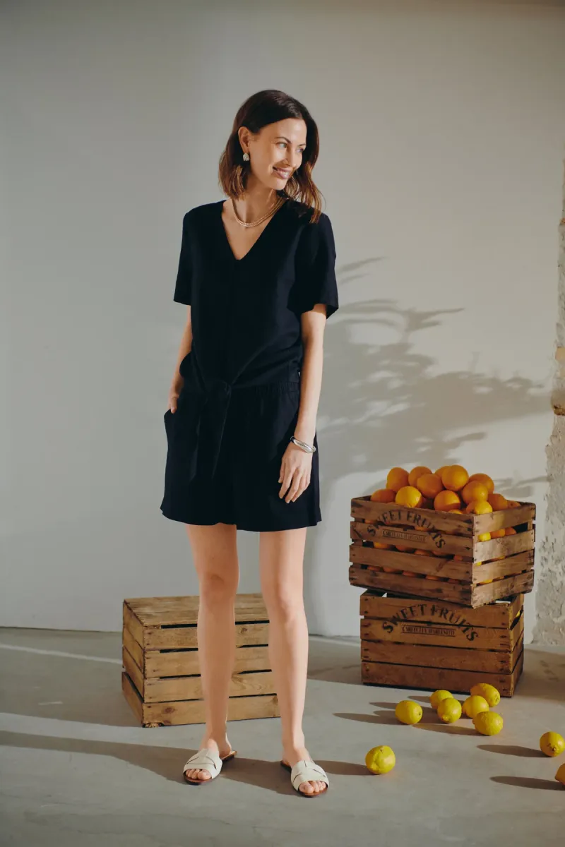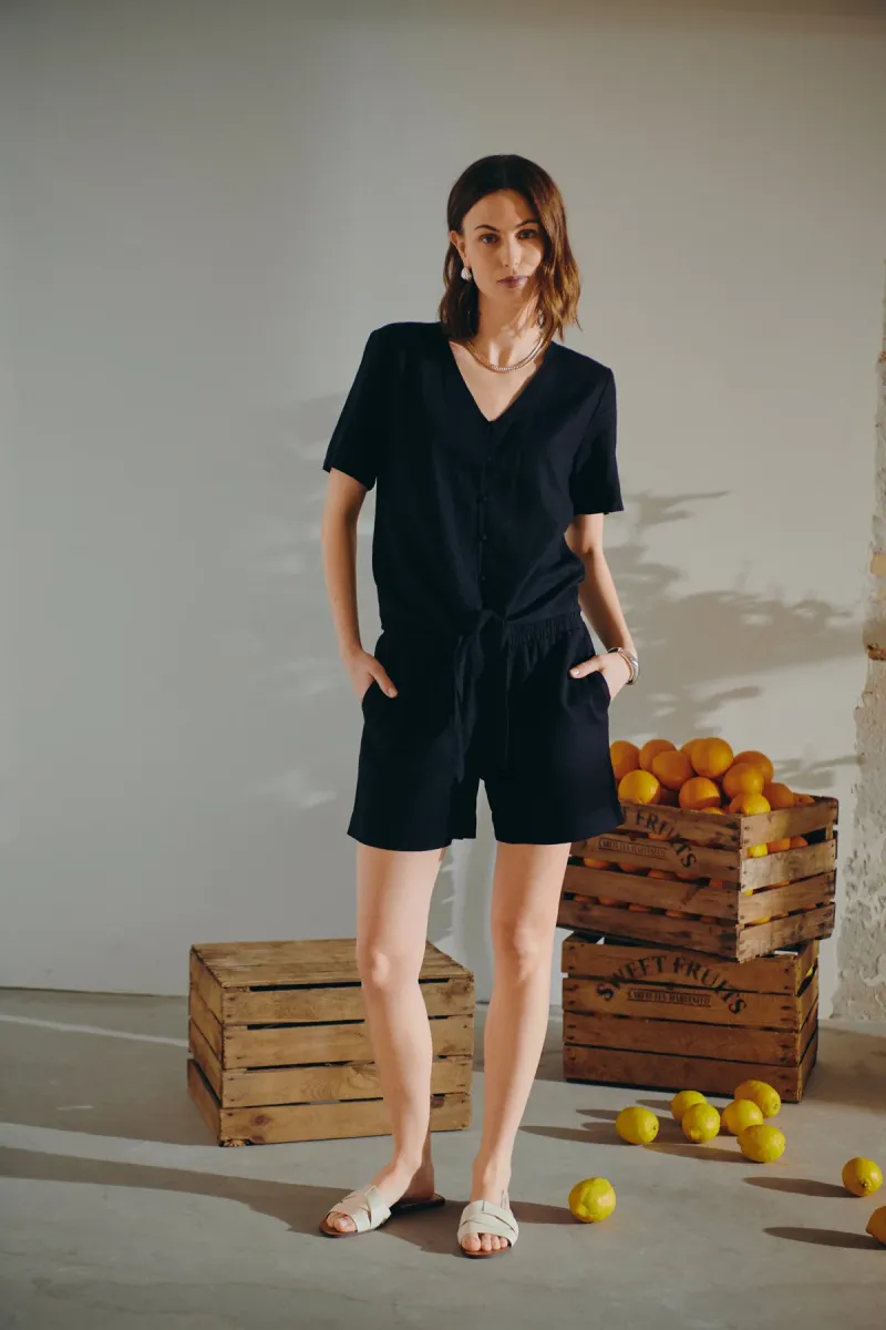 Shorts van Freequent in een lichte geweven linnenmix. De shorts hebben een eenvoudig silhouet met een elastische tailleband met trekkoord, een hoge taille, schuine zijzakken en een rechte pasvorm.