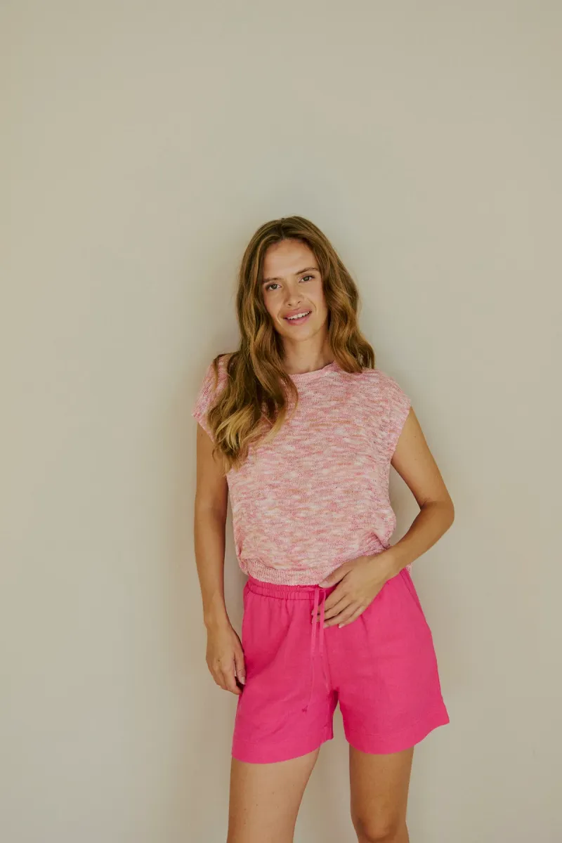 Shorts van Freequent in een lichte geweven linnenmix. De shorts hebben een eenvoudig silhouet met een elastische tailleband met trekkoord, een hoge taille, schuine zijzakken en een rechte pasvorm.