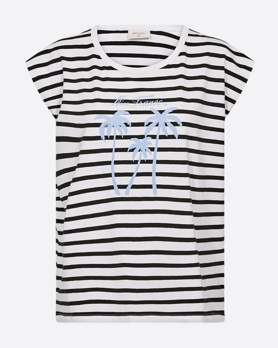 T-shirt van Freequent in een zachte jersey met geverfde strepen. Het T-shirt heeft een eenvoudige, losse pasvorm met een ronde halslijn van effen ribstof, korte mouwen en een contrasterende print op de voorkant.