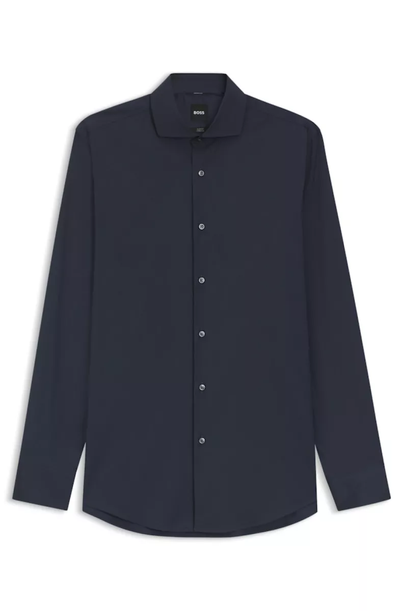 Een overhemd met lange mouwen van BOSS Menswear. Dit overhemd heeft een getailleerde pasvorm voor een strakke look en is gemaakt van een katoenrijke poplinmix met stretch, behandeld met een strijkvriendelijke afwerking.