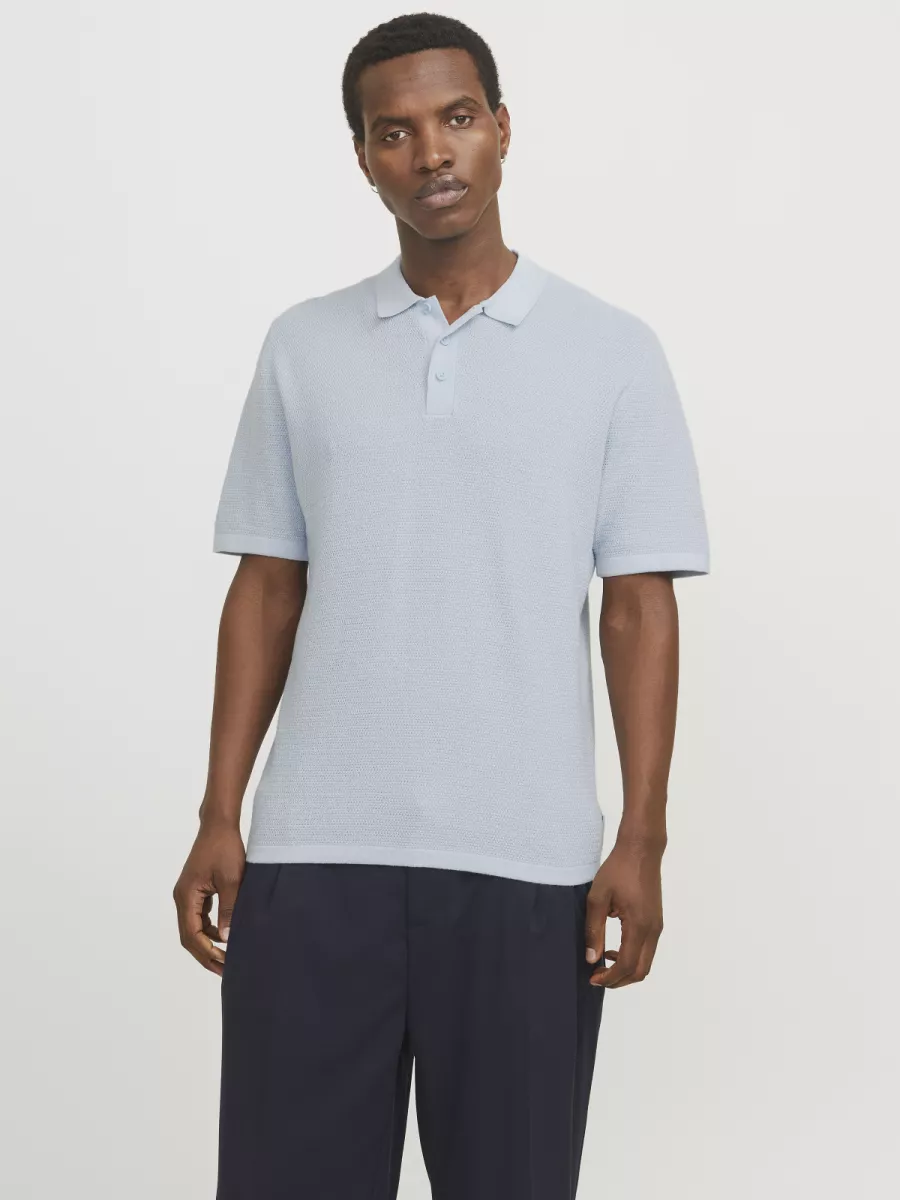 JACK & JONES – JJEGEORGE KNIT POLO SS SN – 12268281 – Chambray blue