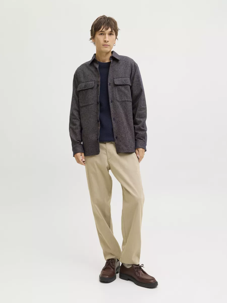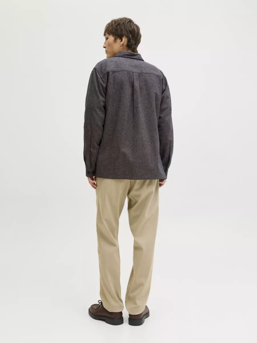 JACK & JONES – JPRRAYLE MELANGE SOLID L/S OVERSHIR – 12286840 – Black