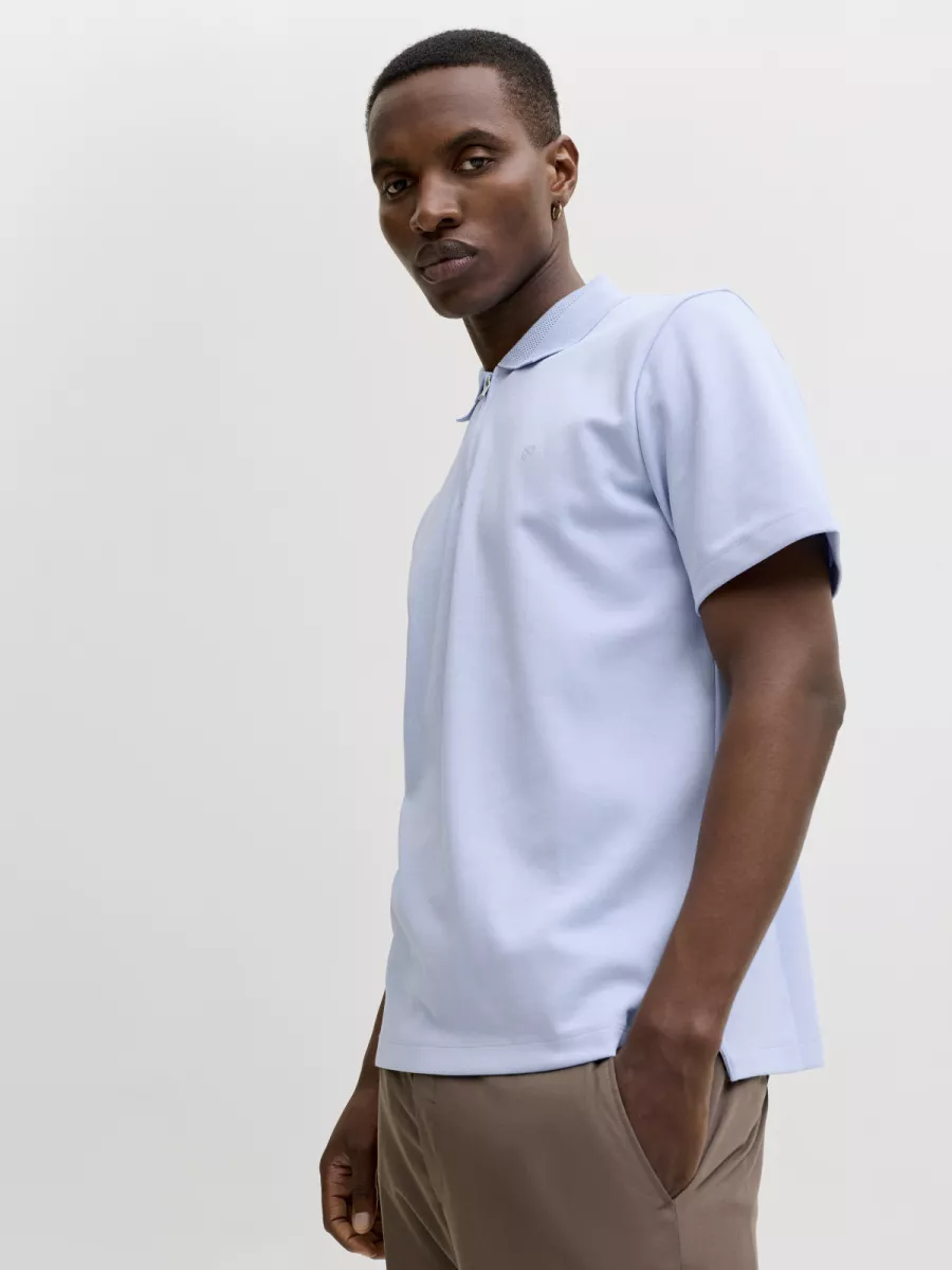 JACK & JONES – JPRBLAETHAN SS ZIP POLO SN – 12292992 – Chambray blue