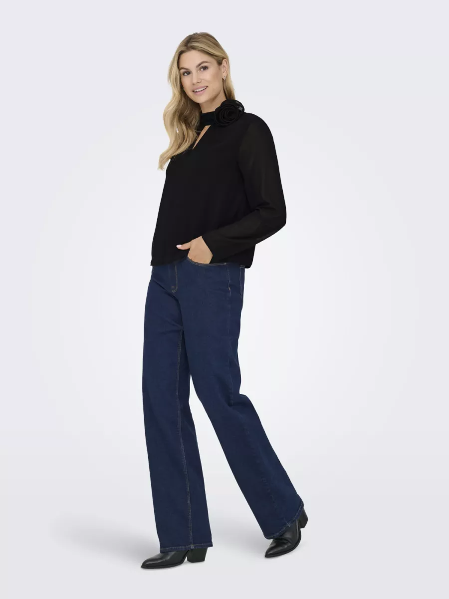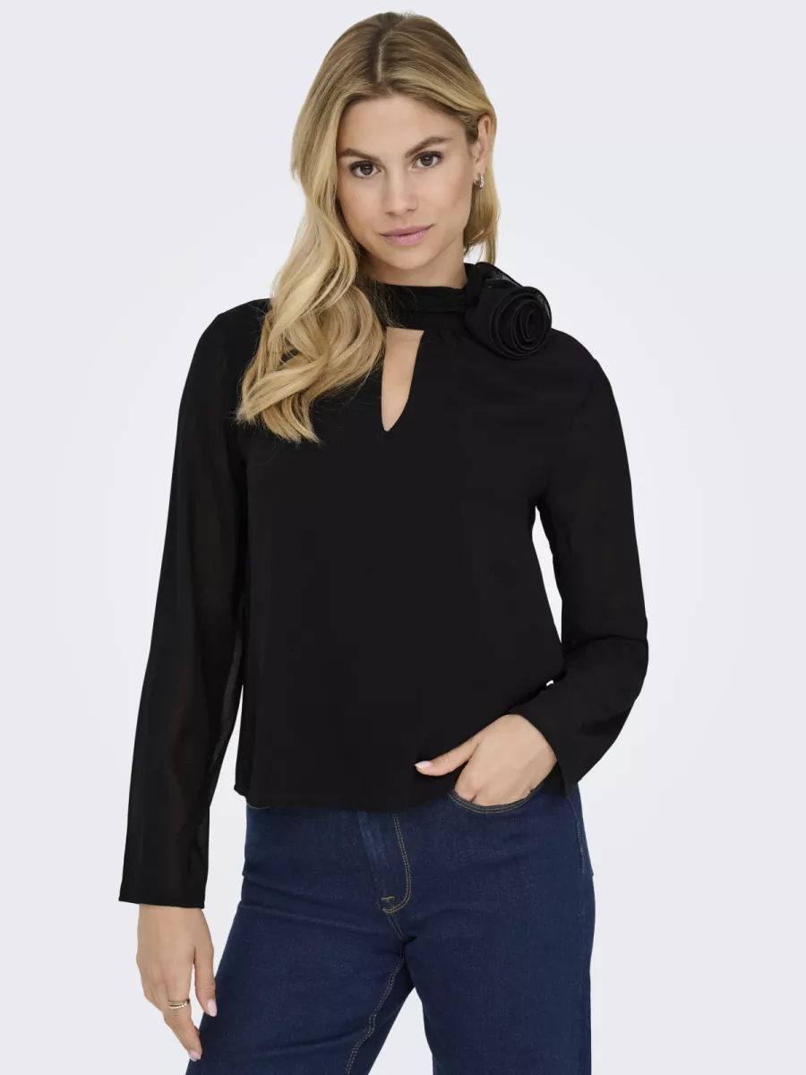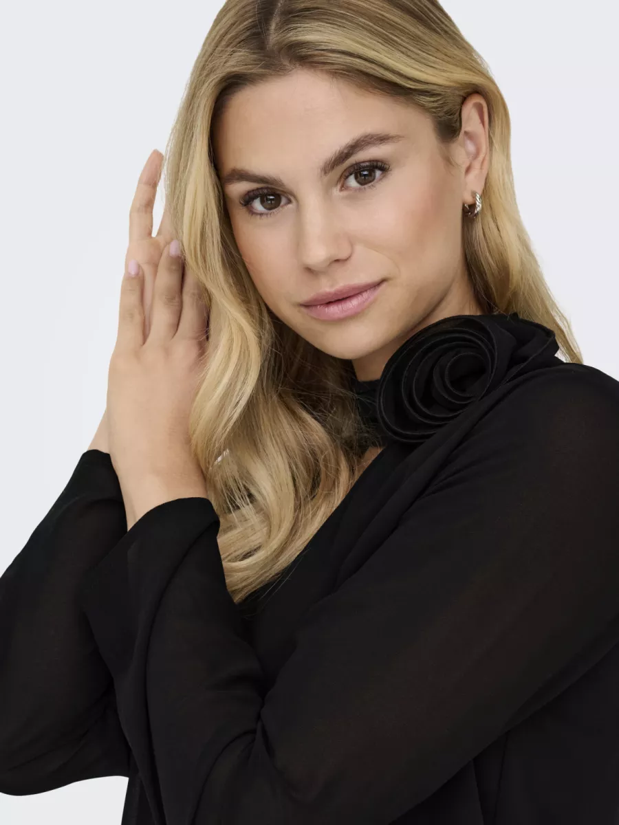JDY – JDYNOMI L/S HIGH NECK ROSE TOP WVN – 15361373 – Black
