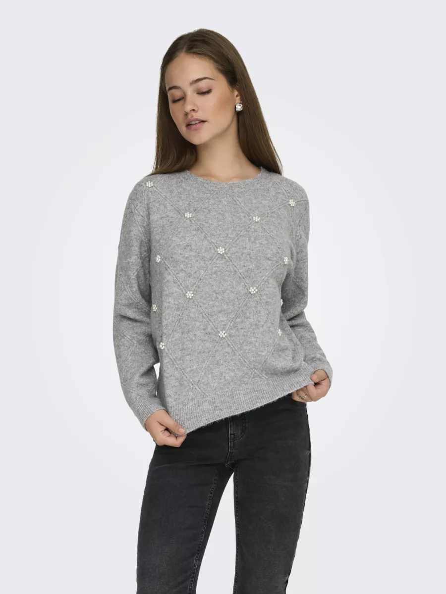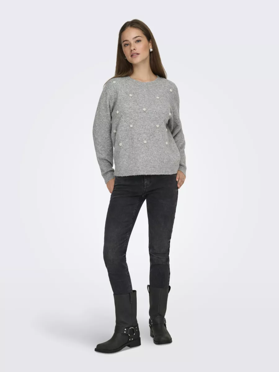 JDY – JDYBELLA LIFE L/S STRUCT PEARL PUL – 15362398 – Light Grey Melange