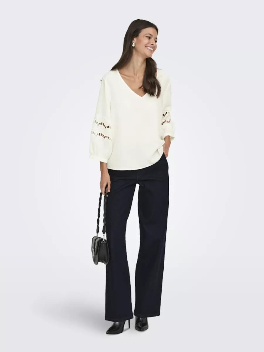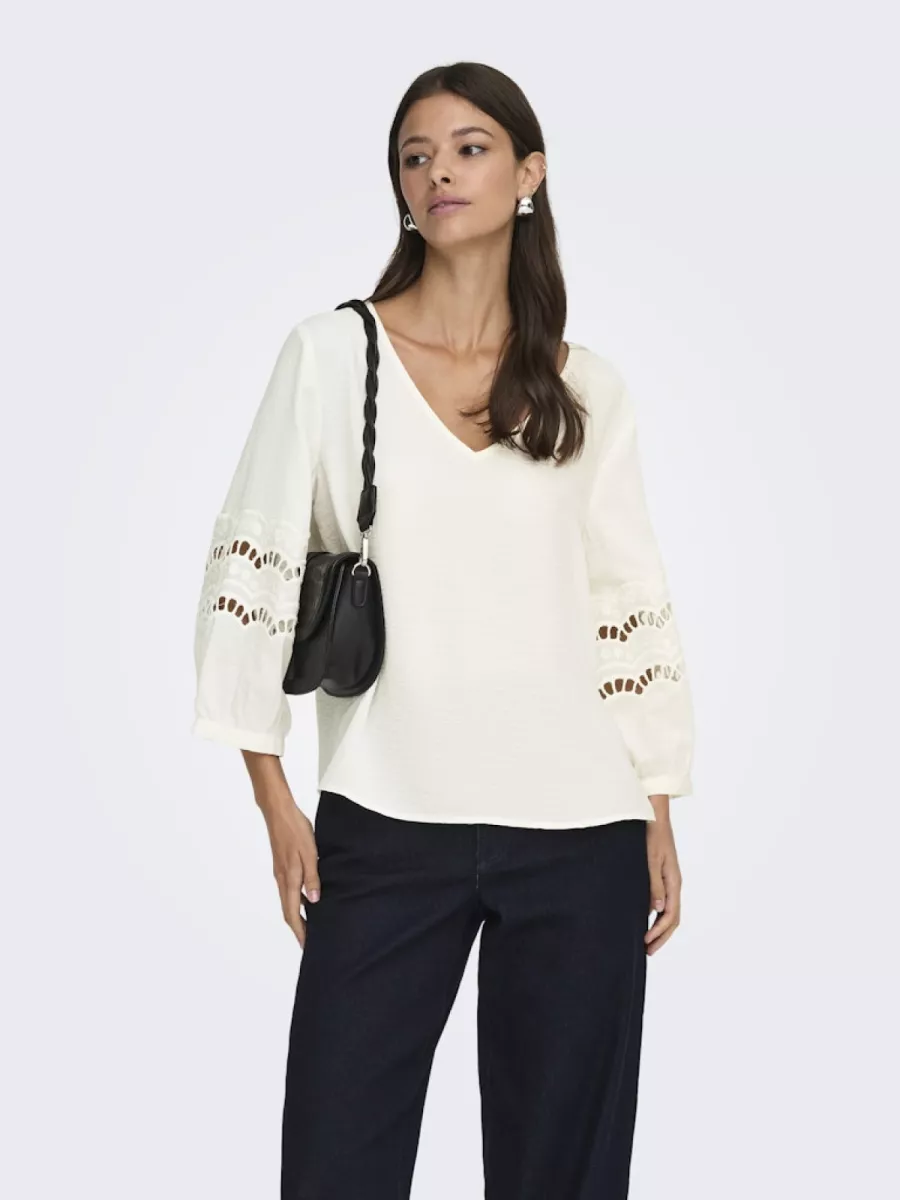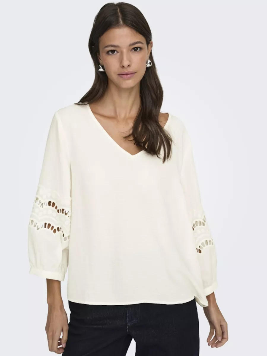 JDY – JDYHANNAH LIFE 3/4 LACE TOP WVN – 15368619 – Cloud Dancer