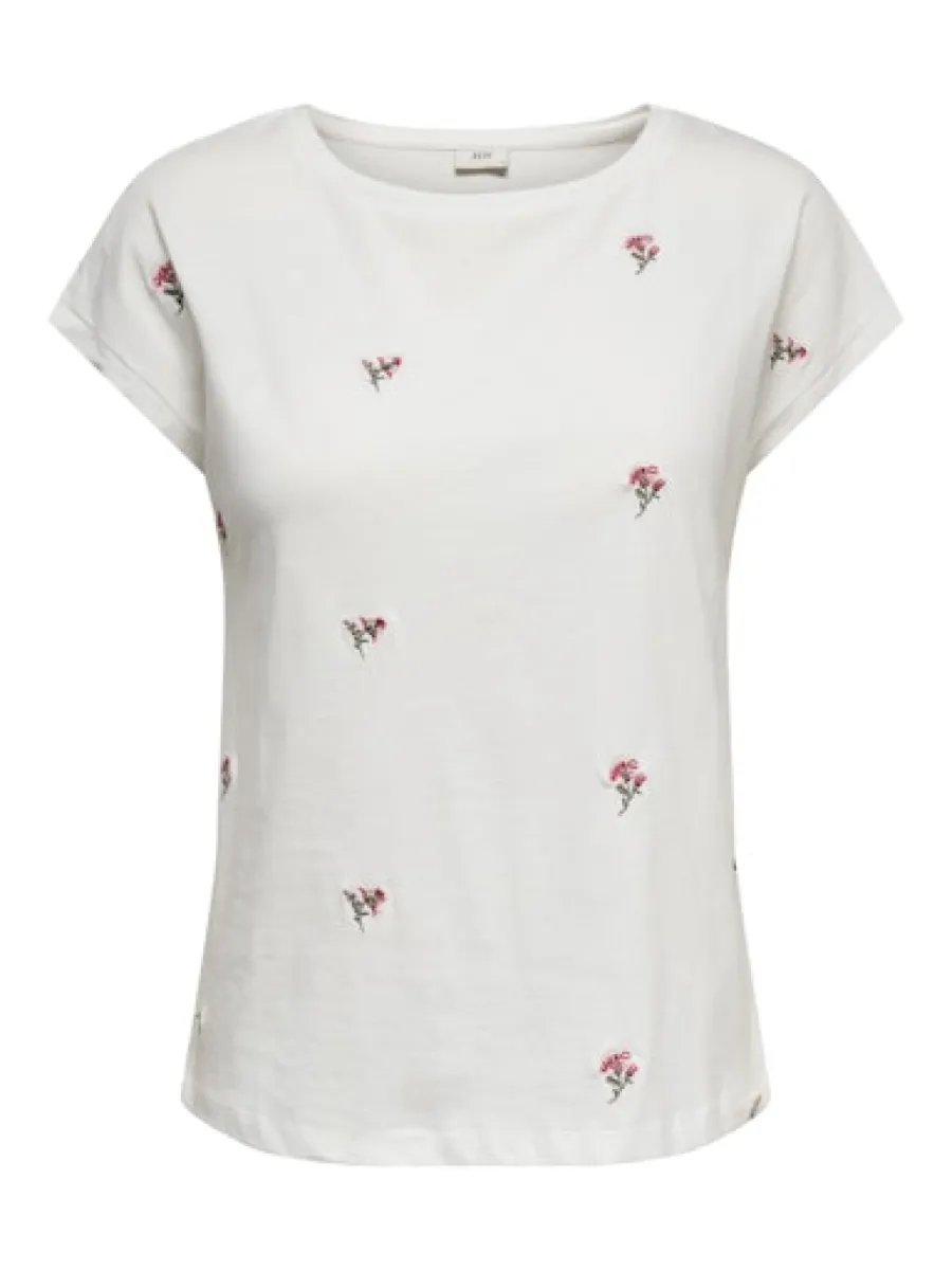 JDY – JDYTIA LIFE S/S EMB T-SHIRT JRS – 15369918 – Cloud Dancer