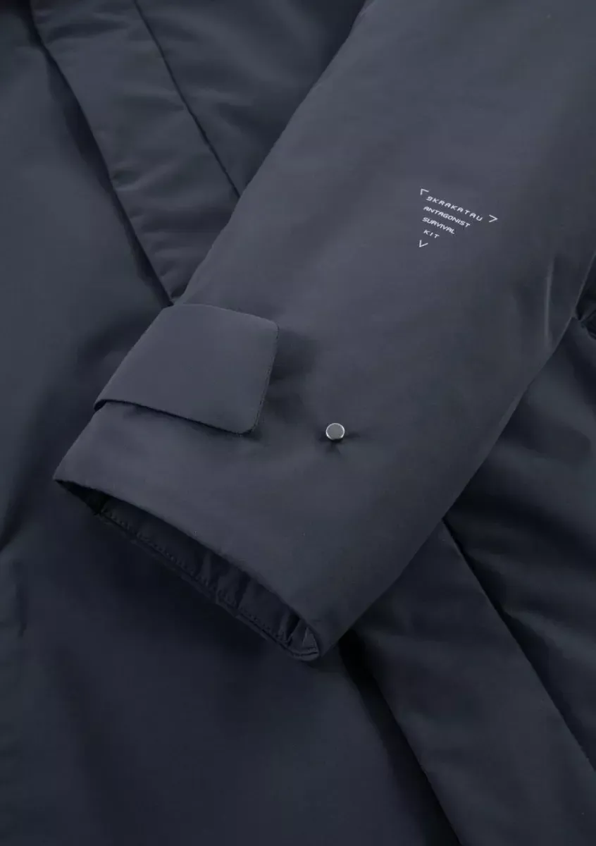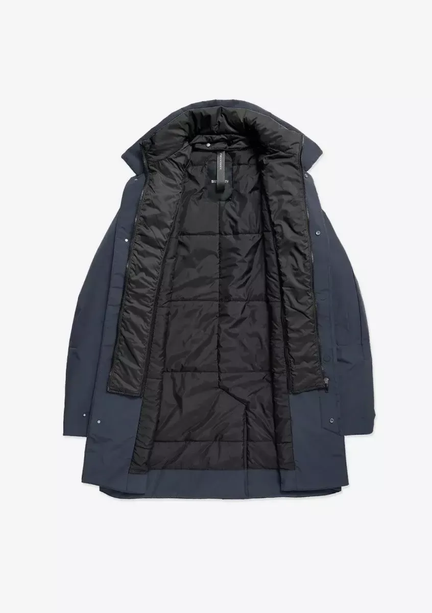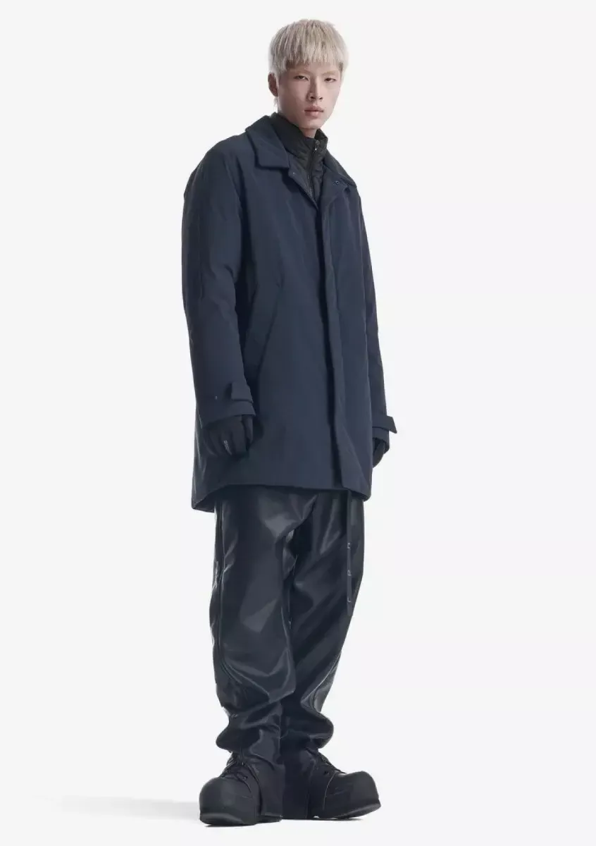 De BLERIOT trenchcoat is gemaakt van waterafstotend functioneel materiaal. De isolatie van gerecycled polyester behoudt warmte en vorm zonder onnodig volume. Drukknoop- en magneetsluitingen zijn gemakkelijk te gebruiken, zelfs met handschoenen aan, terwijl de binnensluiting extra bescherming tegen de wind biedt. Magnetische zakken, een verborgen mesh-vak voor kleine spullen, verstelbare manchetten en een ventilatieopening op de rug zijn allemaal ontworpen voor comfort en bewegingsvrijheid.