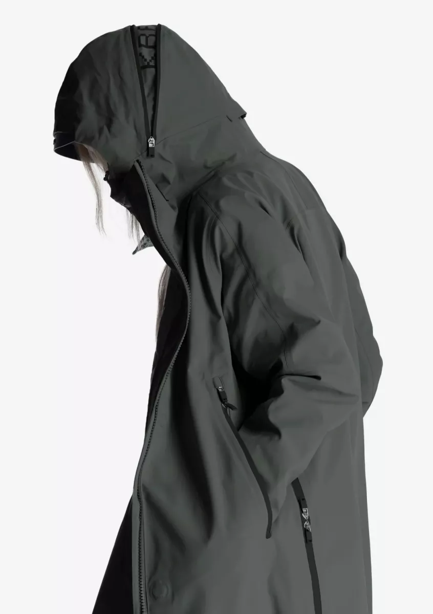 • Waterdichte twee weg ritssluiting met winddichte magneet- en drukknoopsluiting