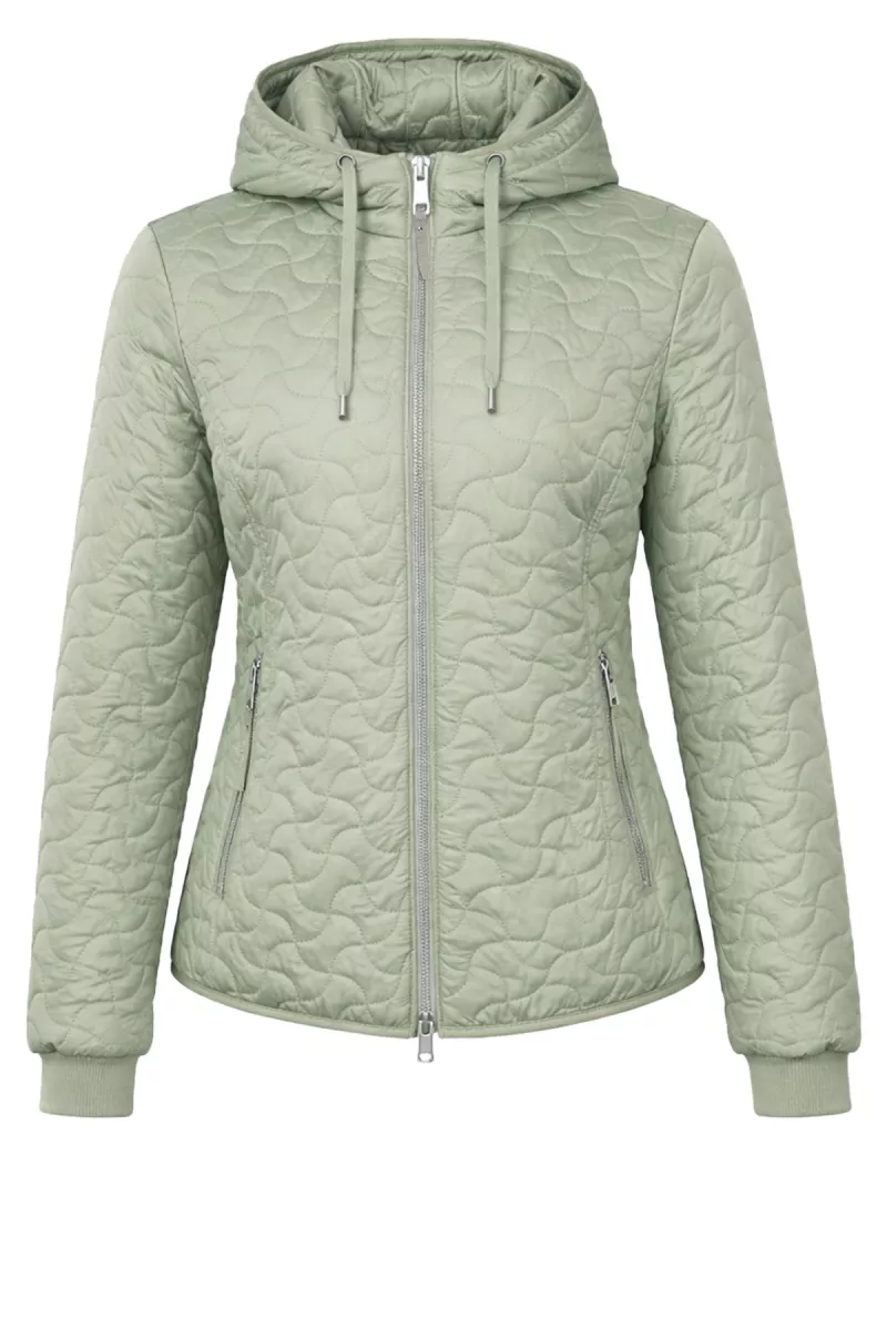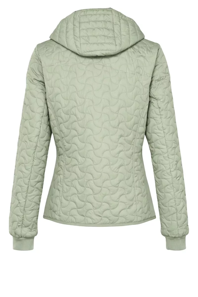 Jas van het merk met lange mouwen, een staande kraag, afneembare capuchon en een ritssluiting. Het voorpand is voorzien van twee ritszakken en figuurnaden die doorlopen op het achterpand. De capuchon heeft een verstelbaar tunnelkoord. De zijkanten van de jas zijn voorzien van een elastische boord. De jas is gemaakt van een gladde doorgestikte stof die gewatteerd is.