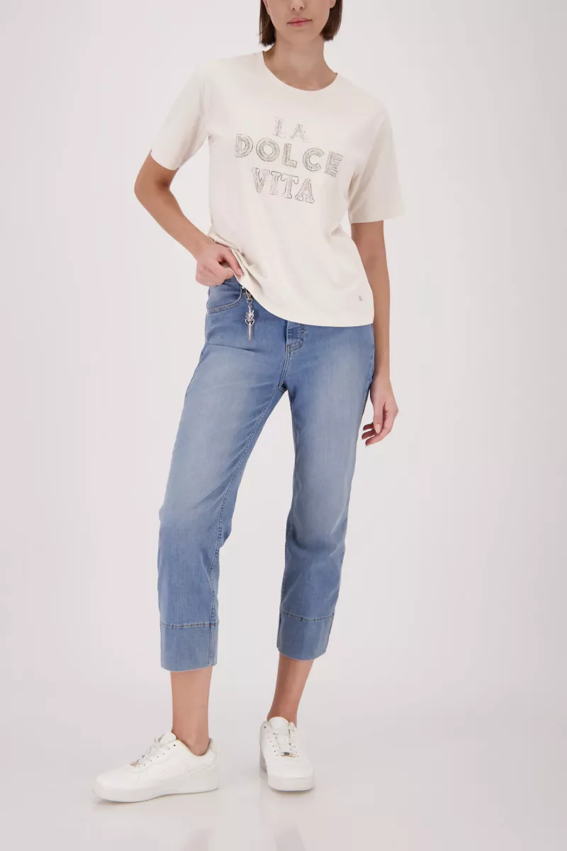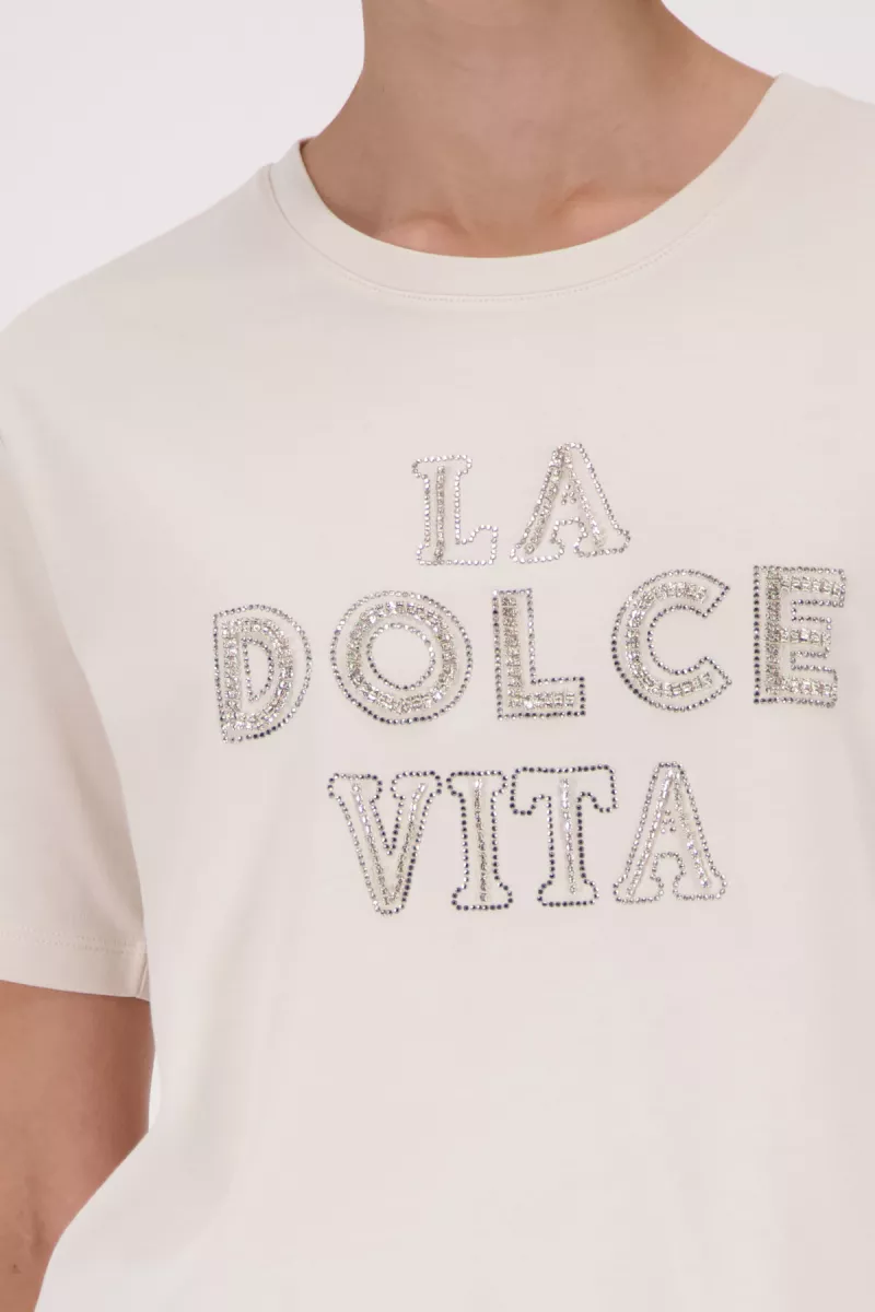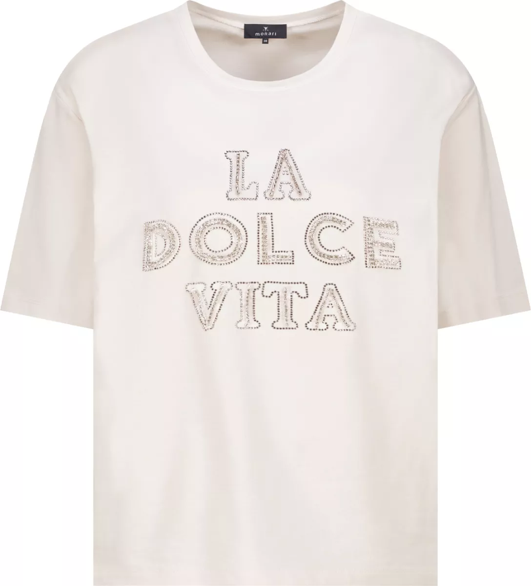 Monari – T-shirt with decorative lettering – 410183 – 124 Champagne beige