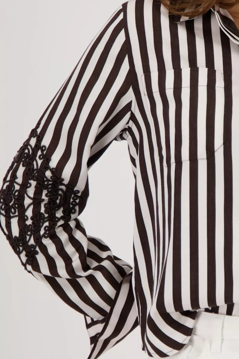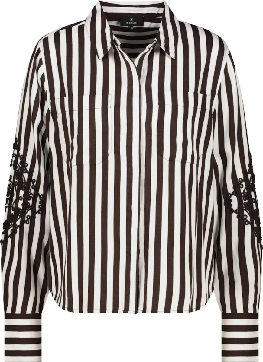Monari – Blouse with cord embroidery – 410252 – 565 Dark chocolate strip