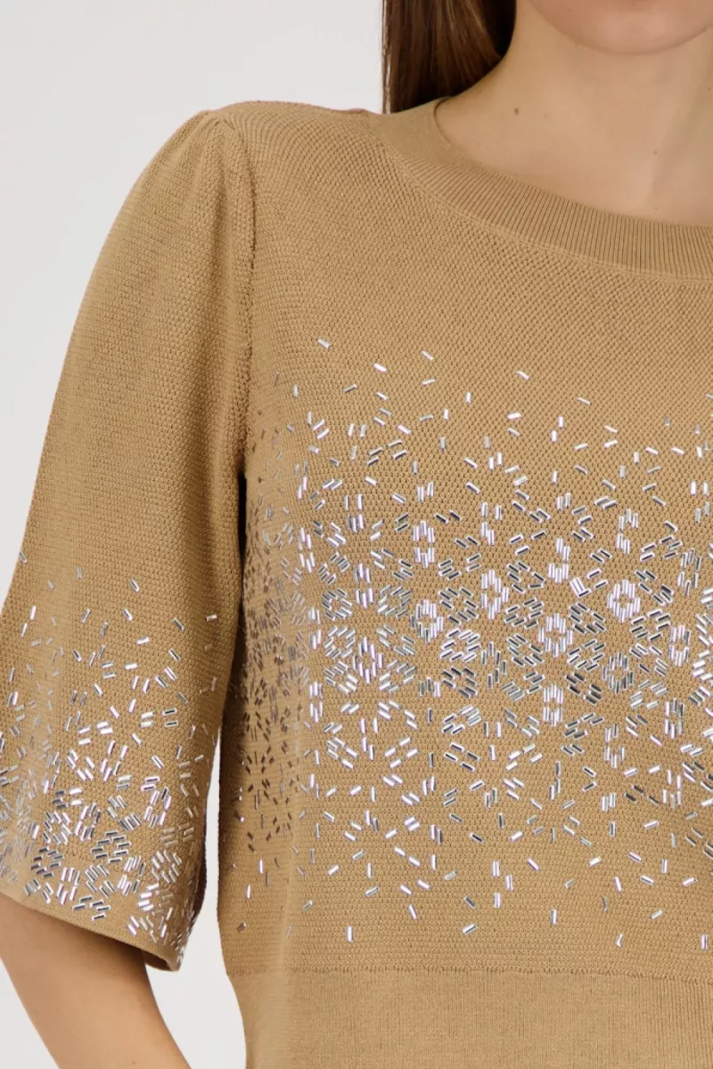 Monari – Jumper with jewelry details – 410274 – 546 Biscotti