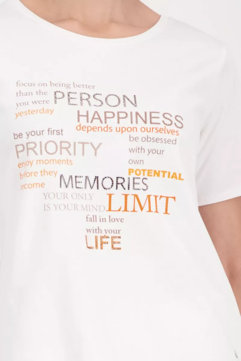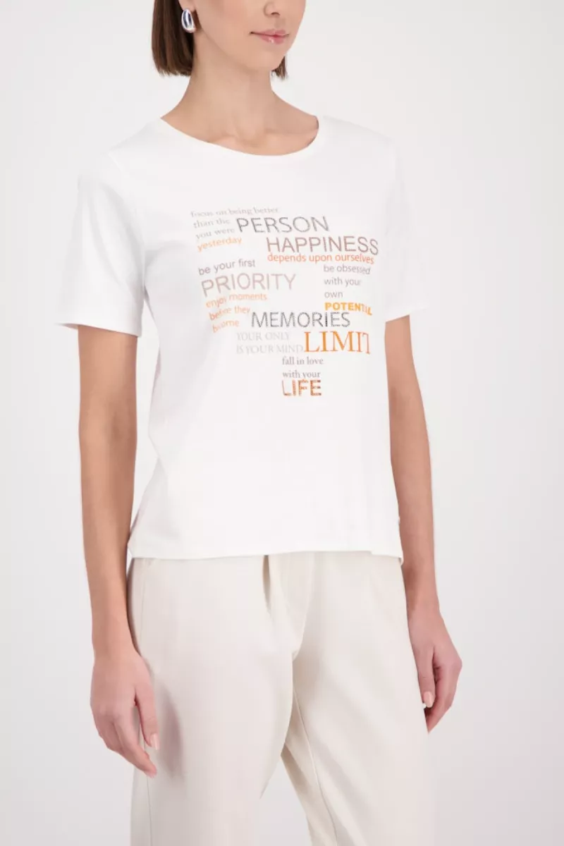 Monari – T-shirt with rhinestones – 410466 – 102 Off white