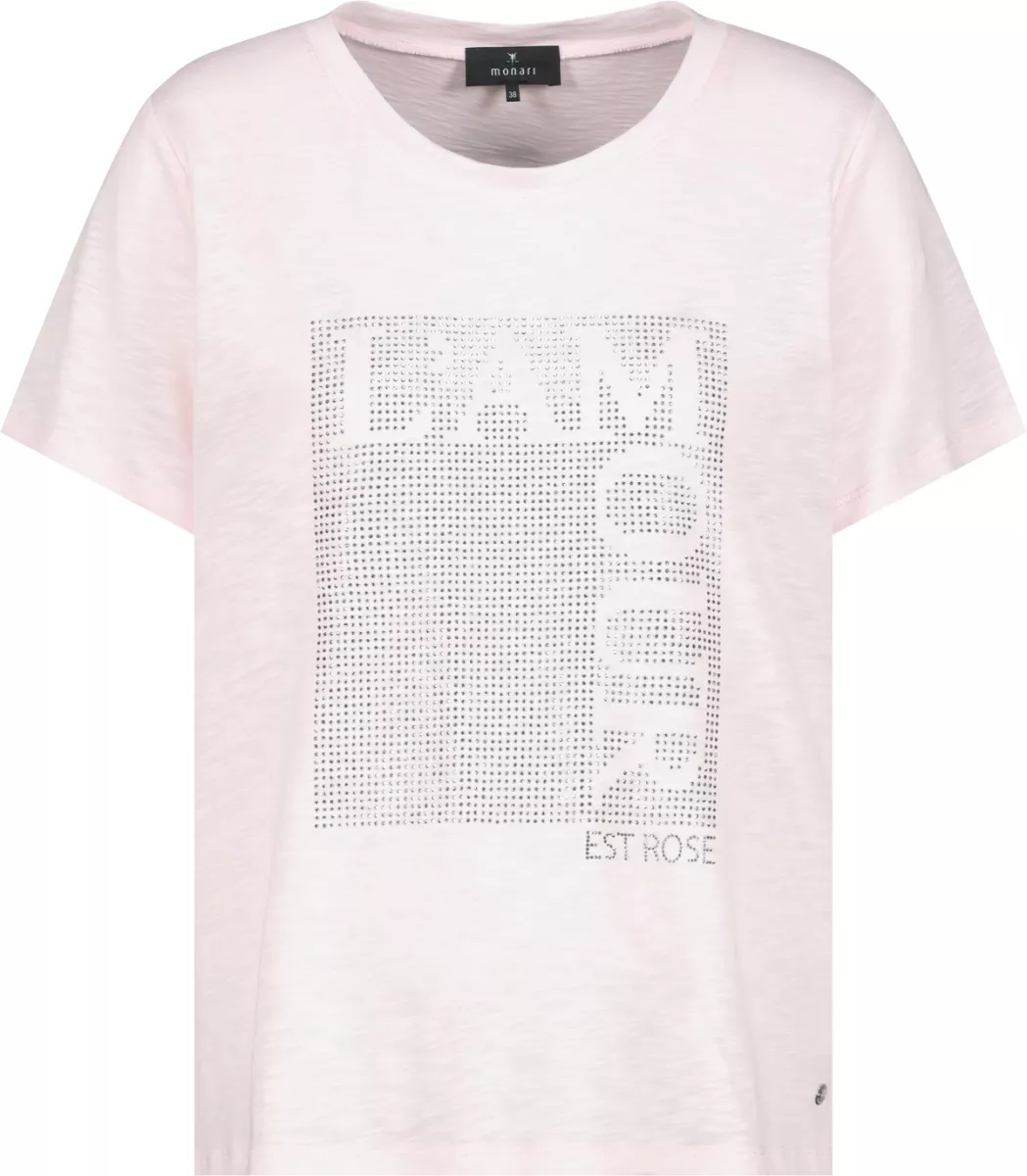 Monari – T-shirt with rhinestones – 410614 – 400 French rose