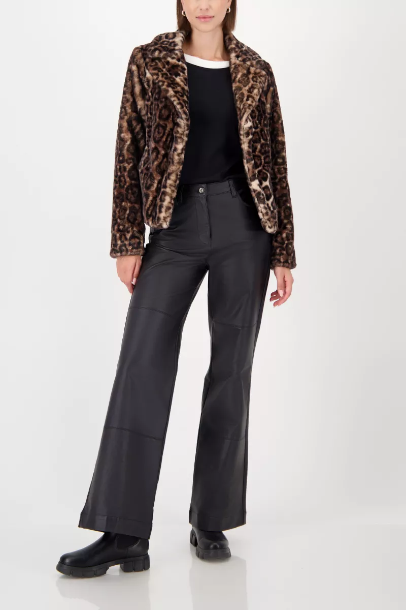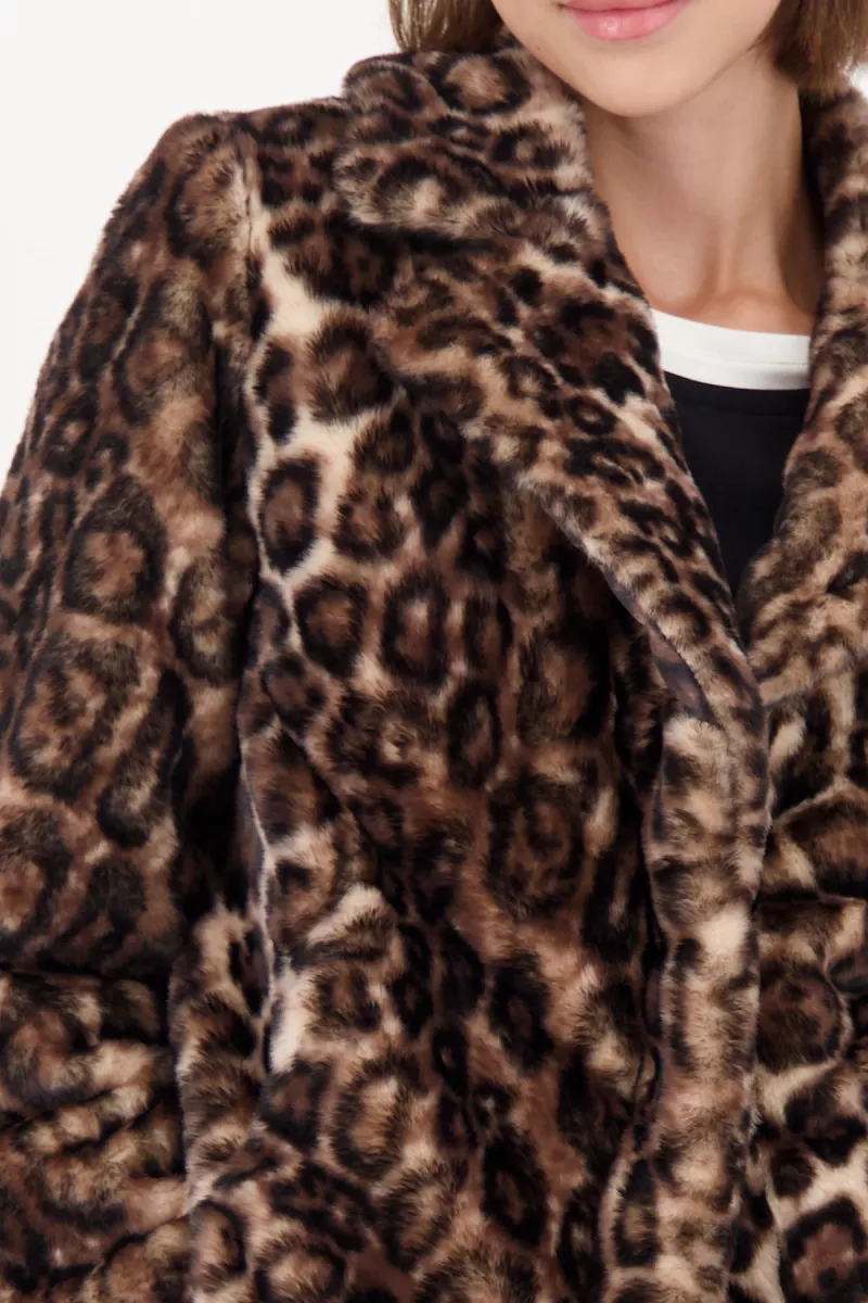 Monari – fack fur jacket with leopard print – 809417 – 522 Brownie pattern