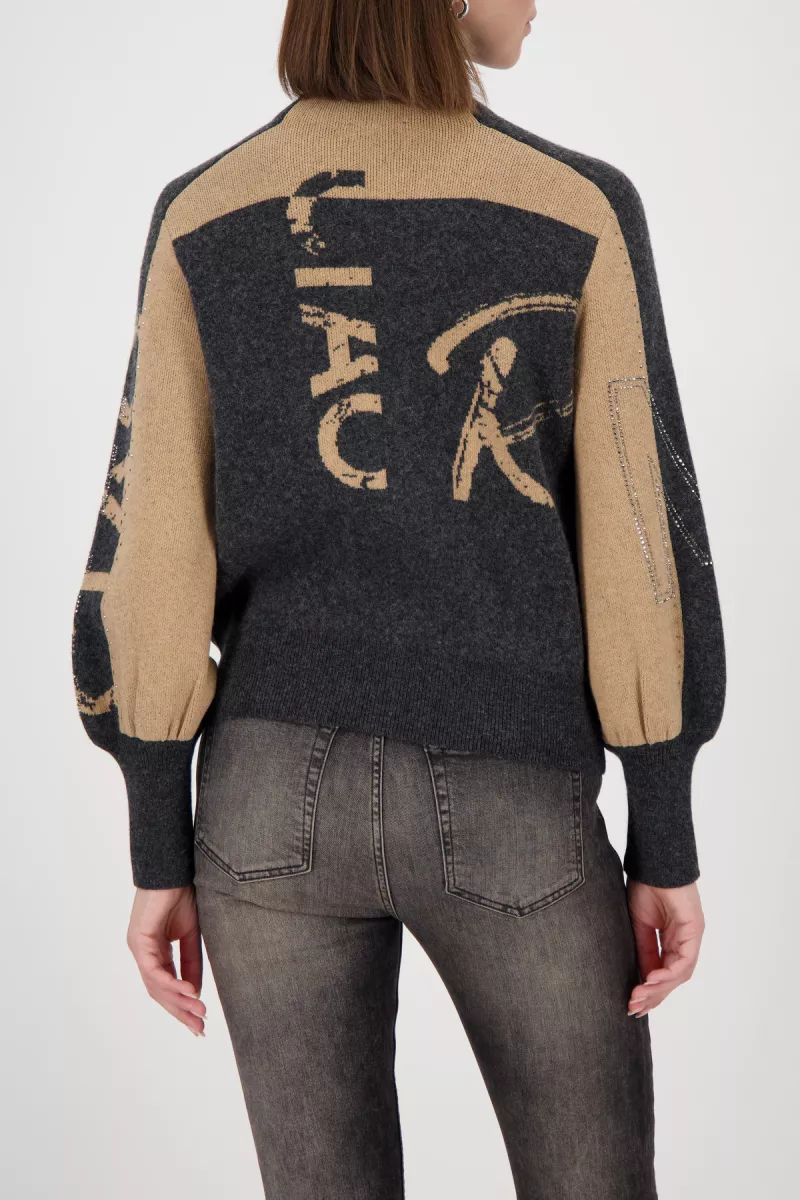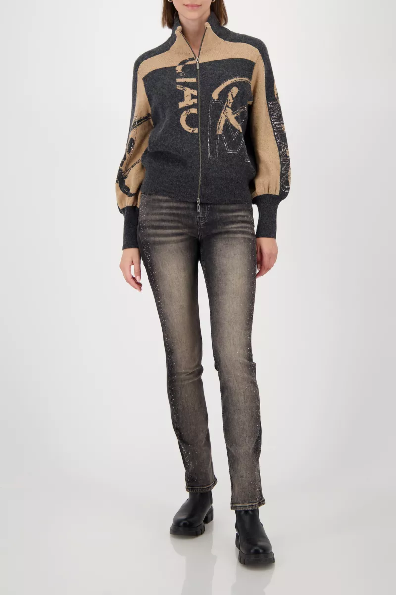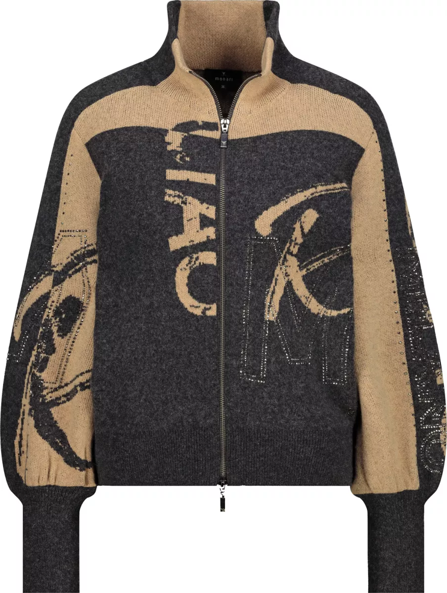 Monari – Cardigan with rhinestones – 809555 – 890 Anthra melange pattern