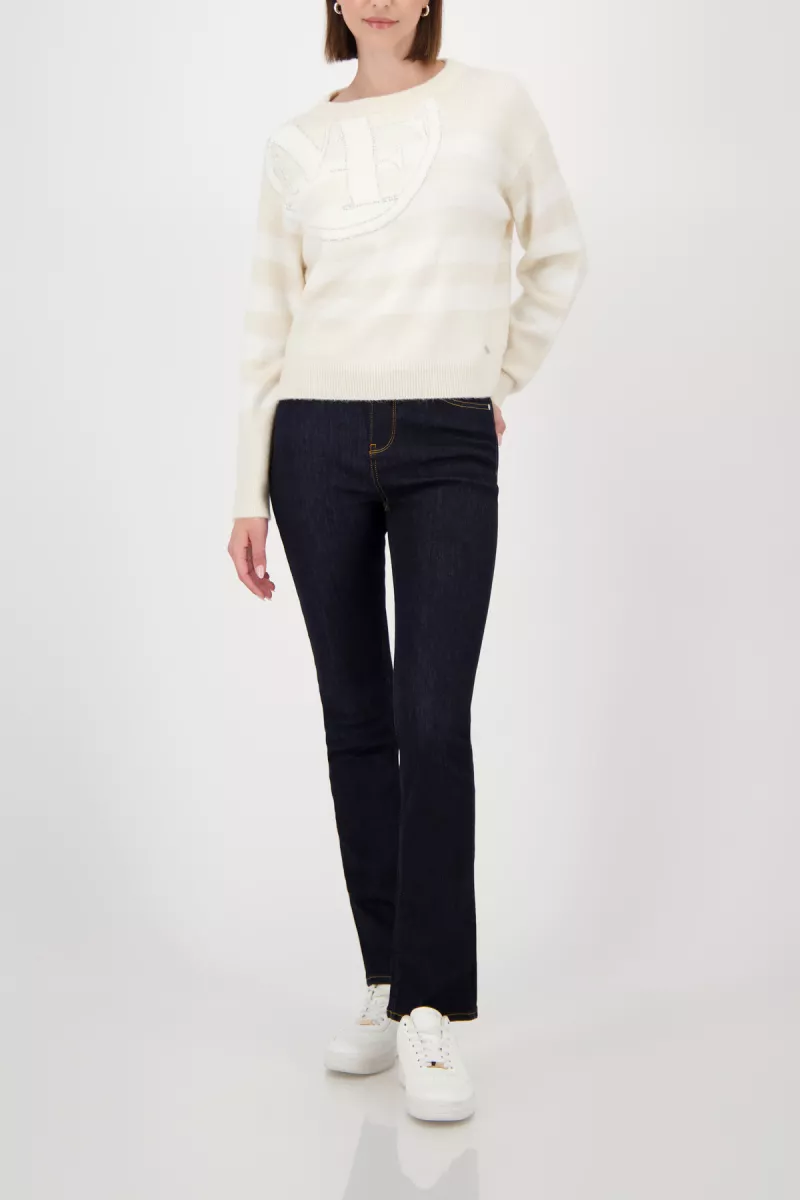 Monari – Sweater with striped pattern – 809656 – 134 Almond