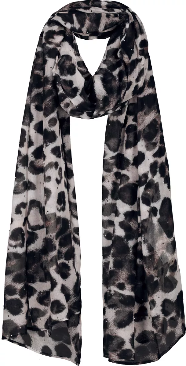 Monari – Scarf with leopard print and rhinestones – 809676 – 522 Brownie pattern
