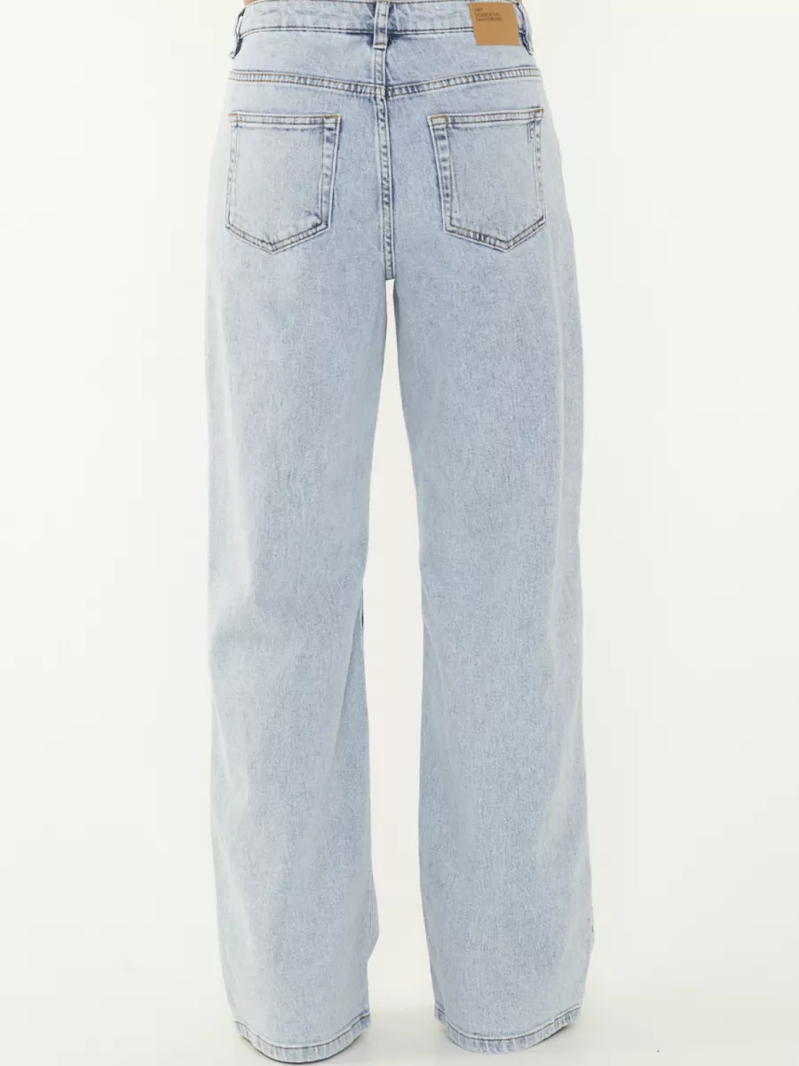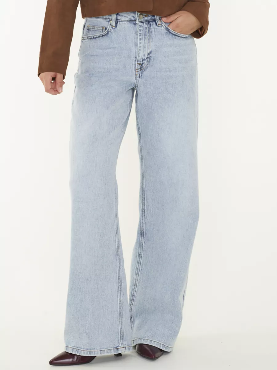 Wide leg jeans van My Essential Wardrobe. Puck draagt maat 27/34. 94% katoen, 5% polyester, 1% elastaan. Twijfel je over de maat of het model, dan kun je ons altijd een berichtje sturen. Dit kan via de chat, Instagram of Whatsapp. We helpen je graag! Zo kunnen we er samen voor zorgen dat de kans kleiner is dat je het item moet retourneren. Dit is een basic item, dus mocht je maat er niet meer tussen zitten, stuur ons een mailtje of appje dan reserveren we deze voor je!