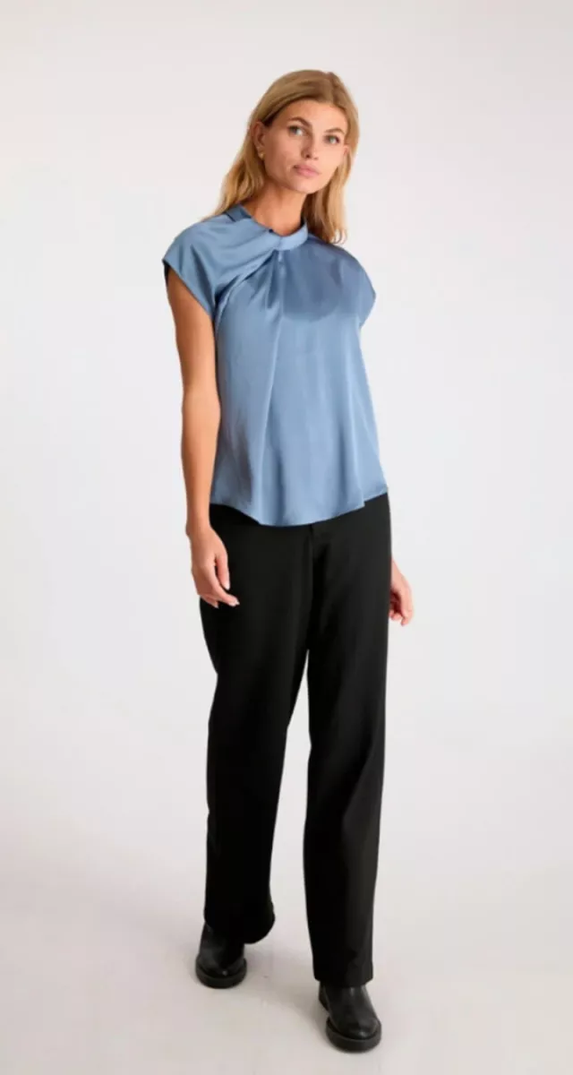 Neo Noir – Fleur Drapy Satin Blouse – 160990 – 142 Dusty Blue