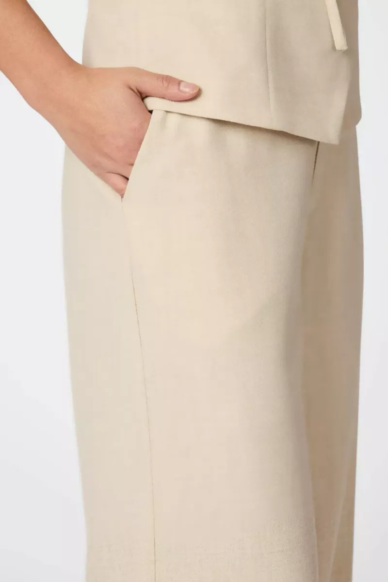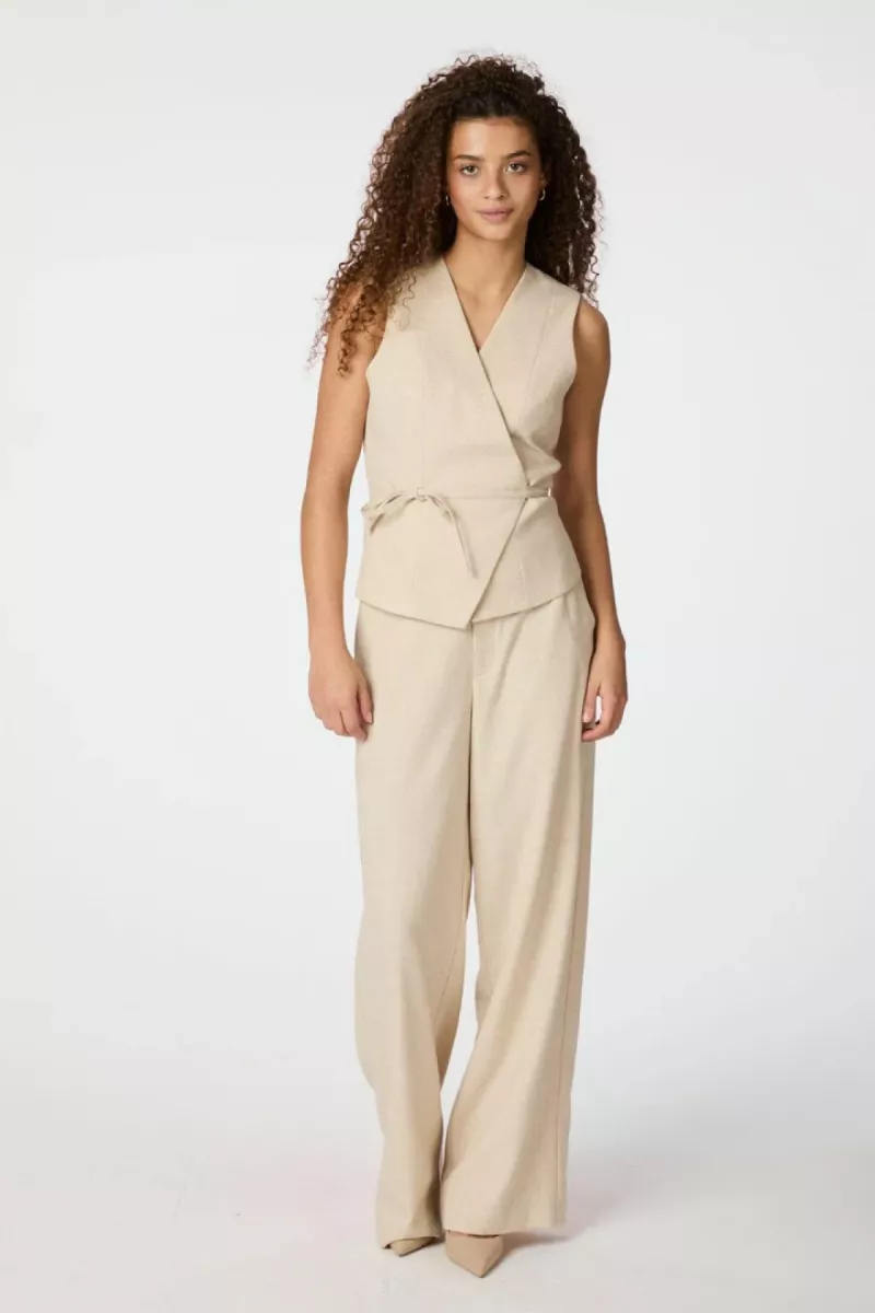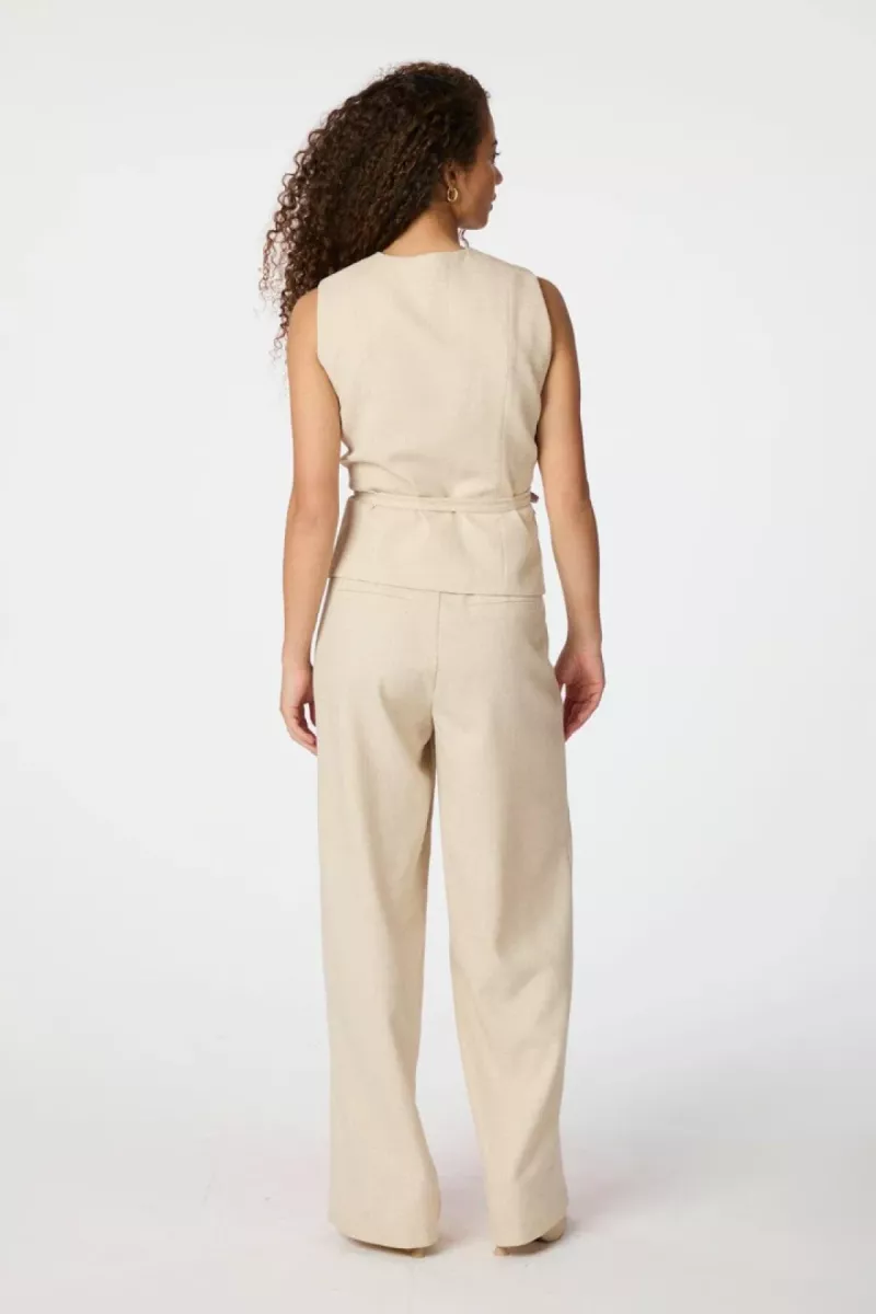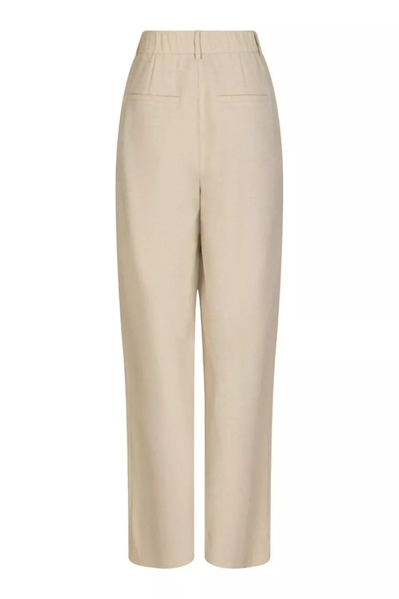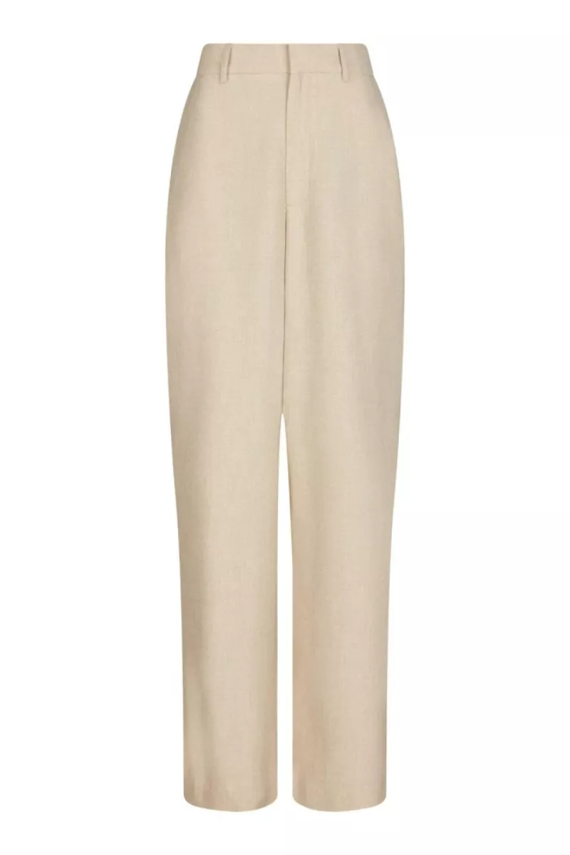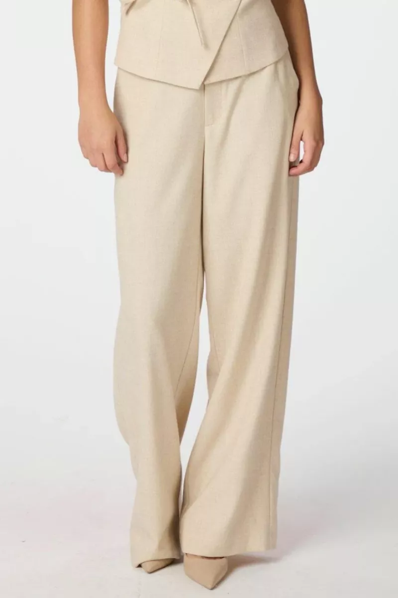 - High-waisted broeken van Neo Noir in beige melange. De broeken hebben een brede pijp en reiken tot de vloer.