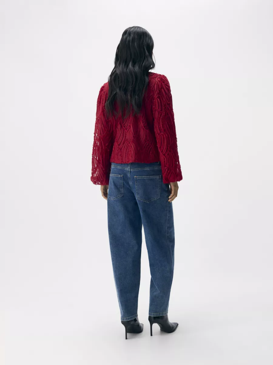 OBJECT – OBJLUCIE L/S RE O-NECK TOP NOOS – 23047624 – Karanda Red