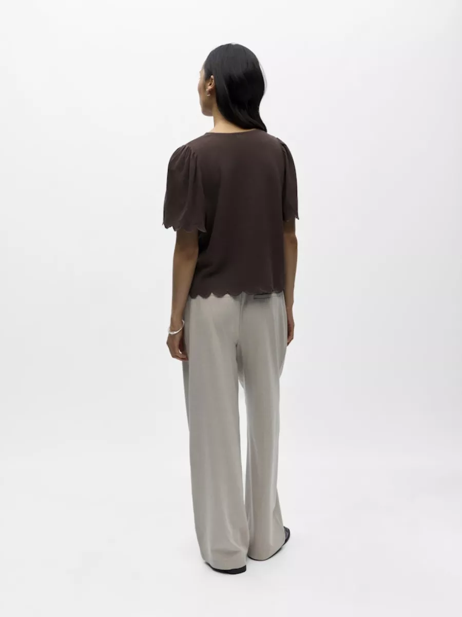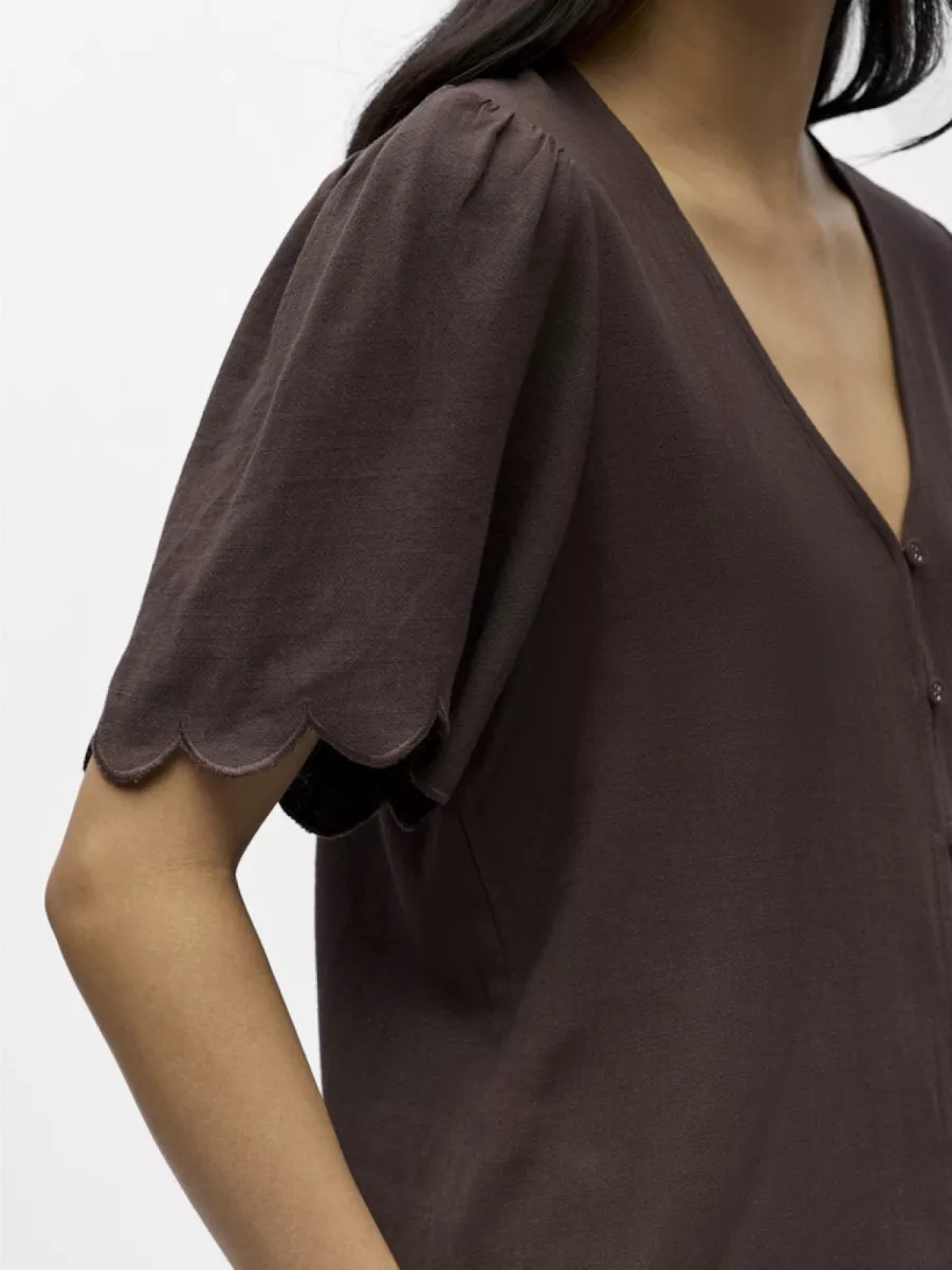 OBJECT – OBJSANNE 2/4 LO V-NECK TOP NOOS – 23048114 – Seal Brown