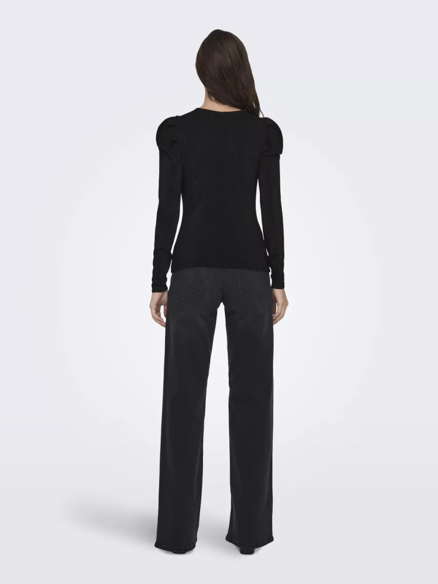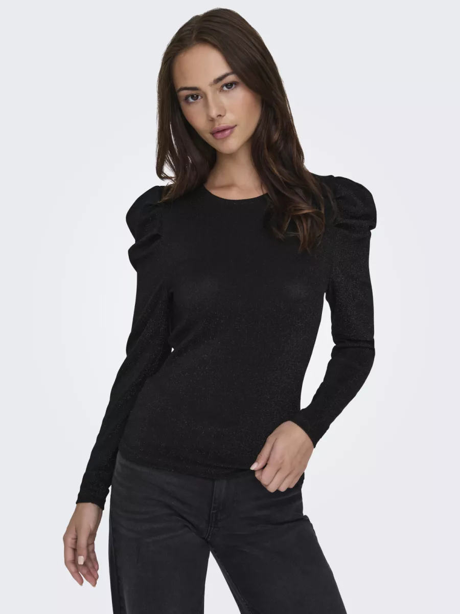 ONLY – ONLRICH L/S GLITTER PUFF TOP JRS – 15278055 – Black Glitter