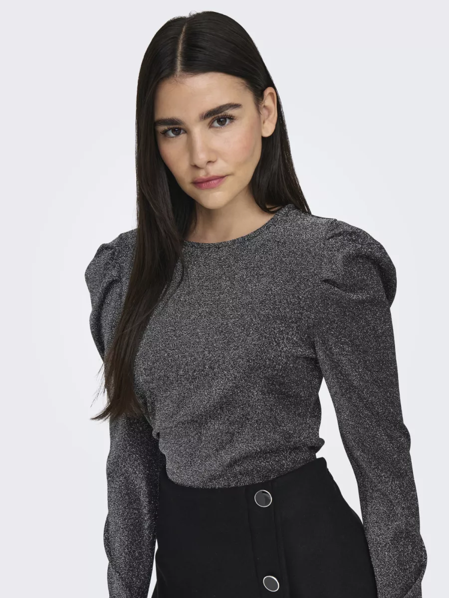 ONLY – ONLRICH L/S GLITTER PUFF TOP JRS – 15278055 – Silver Glitter