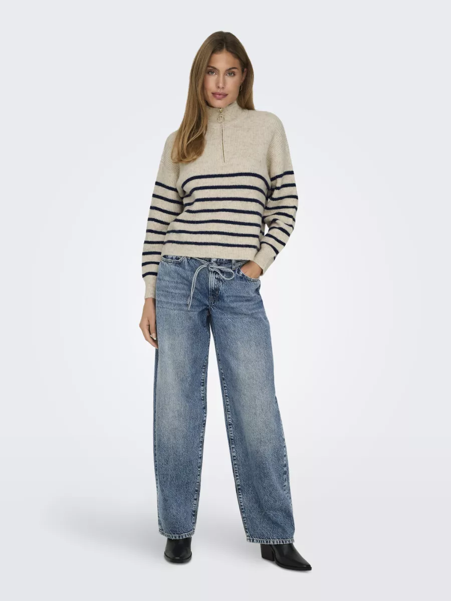 ONLY – ONLTOKYO L/S ZIP PULLOVER KNT NOOS – 15282472 – Pumice Stone