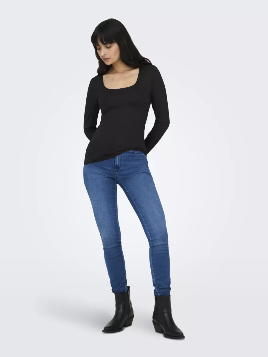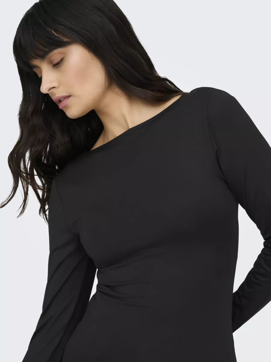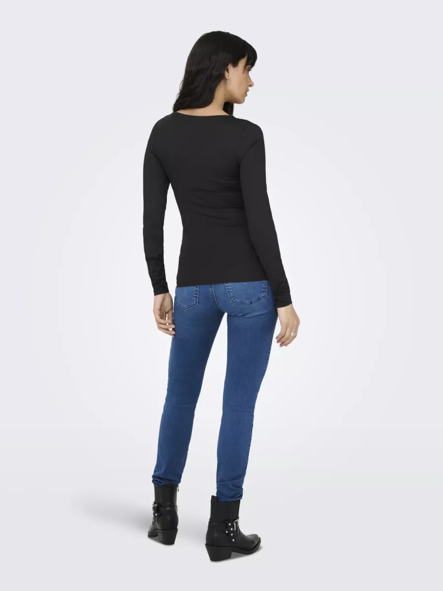 ONLY – ONLEA L/S DEEP NECK TOP JRS NOOS – 15302647 – Black