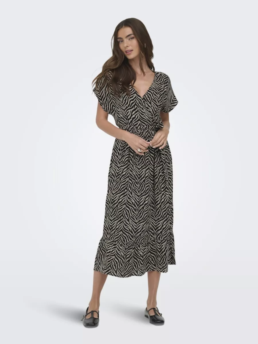 ONLY – ONLZILLA ADELE SS LONG DRESS NOOS W – 15357778 – Black Aop/ Katty Animal
