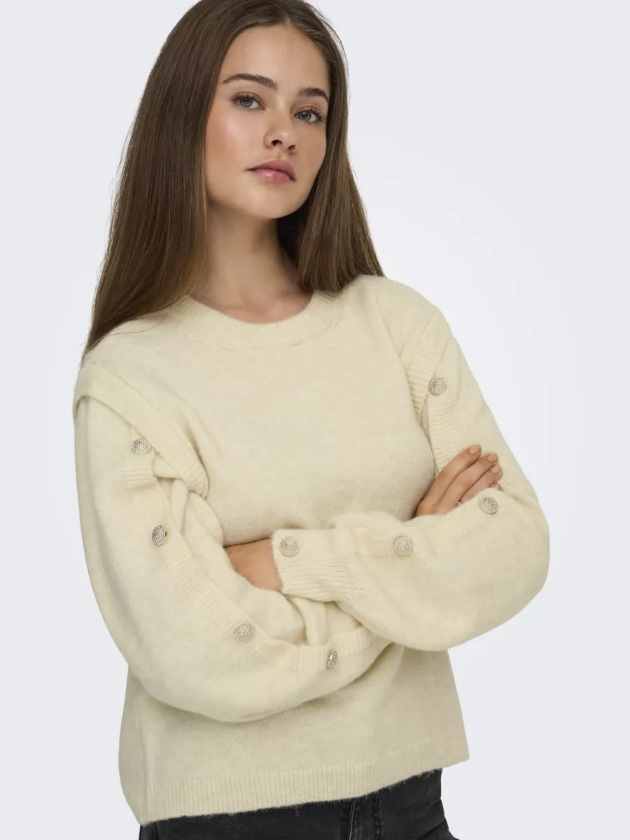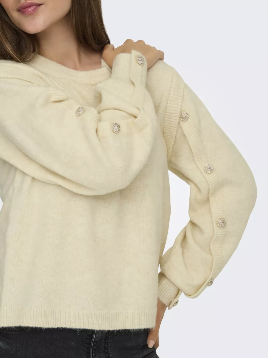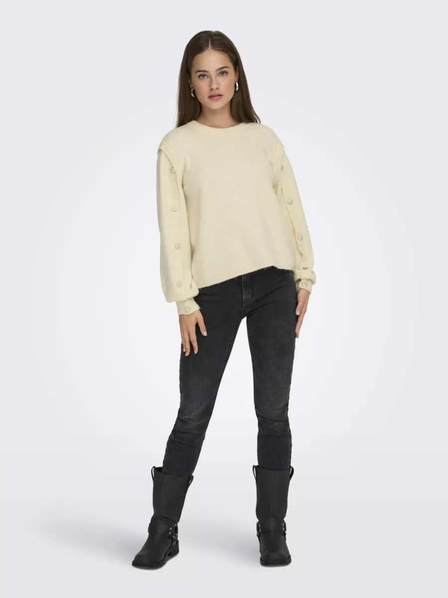 ONLY – ONLRENE LIFE LS BUTTON O-NECK CS KN – 15358576 – Egret