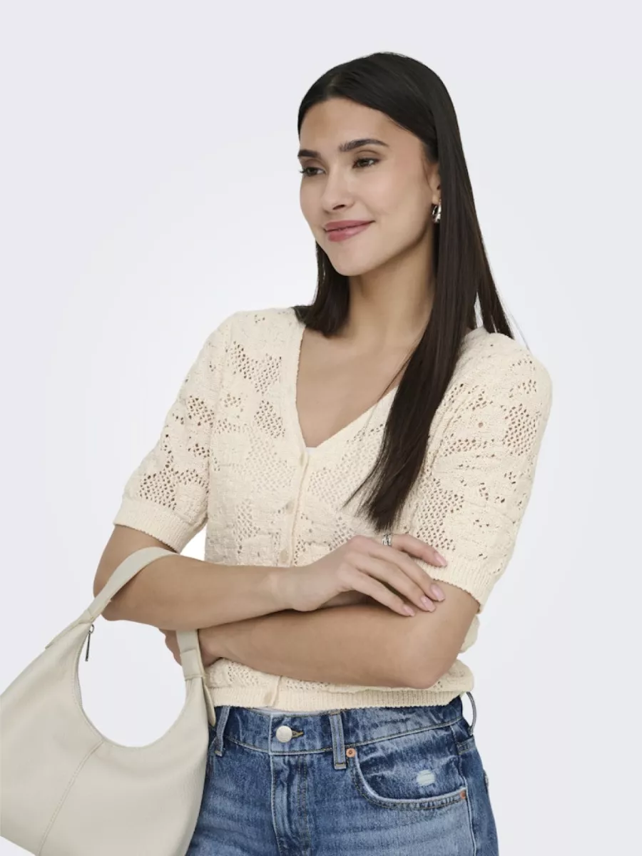 ONLY – ONLCHLOE LIFE SS CADIGAN KNT – 15365089 – Ecru