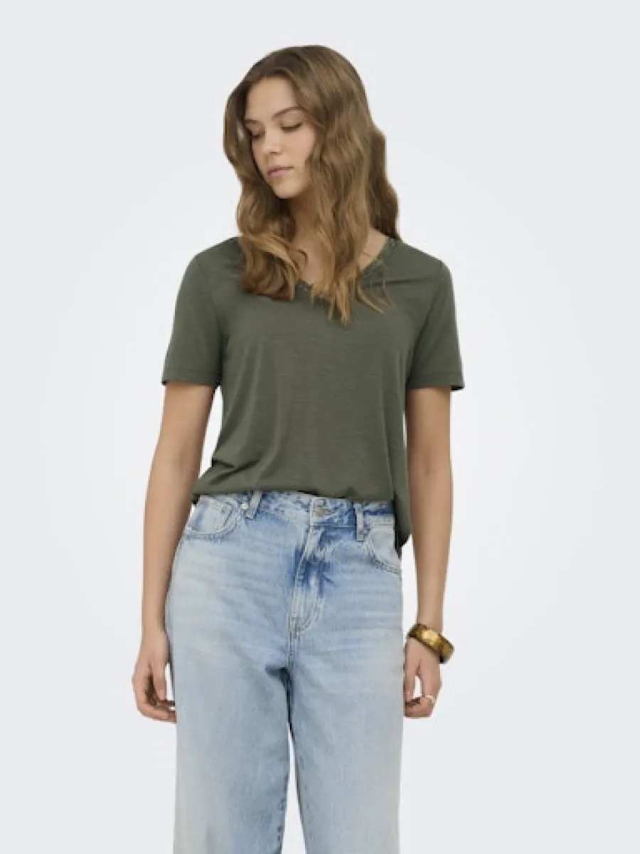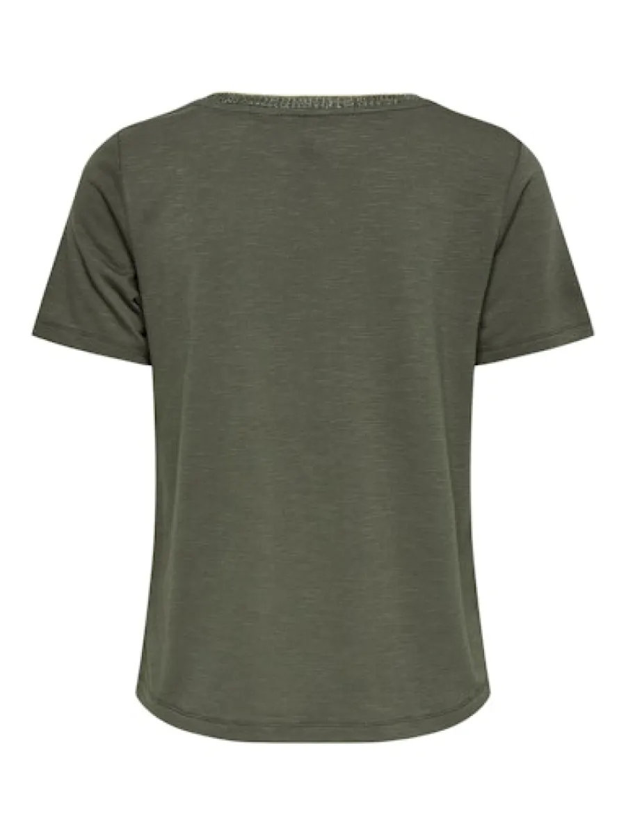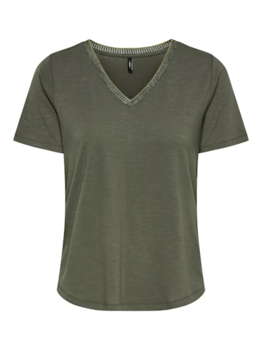 ONLY – ONLDEMI S/S V-NECK GLITTER TOP JRS – 15374855 – Smokey Olive