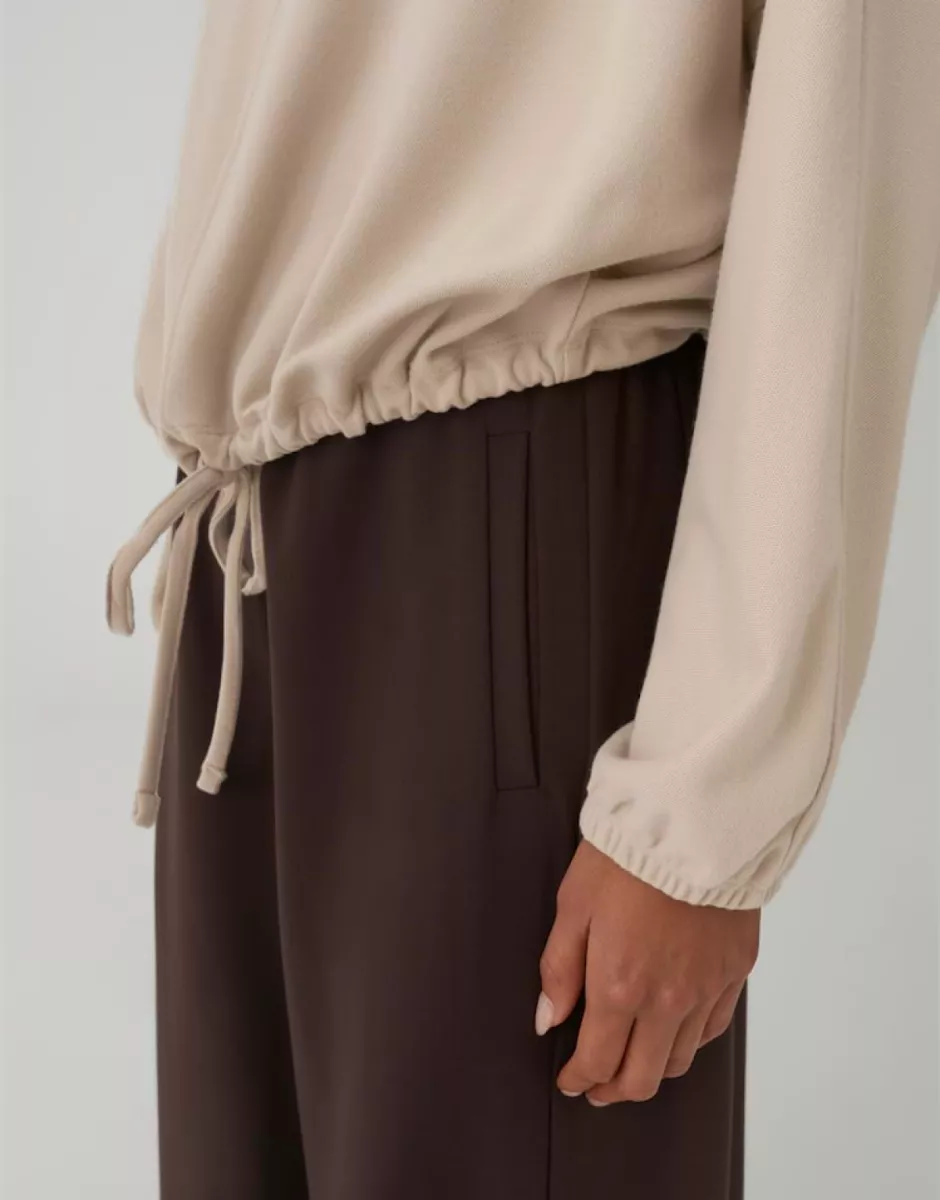 Casual comfort gaat samen met vrouwelijke details, terwijl de zachte, geruwde sweatstof en zoom met trekkoord volume geven. Met een elastische manchet en een fluweelzacht oppervlak is de GUMIPA-stijl perfect afgerond tot in het kleinste detail.