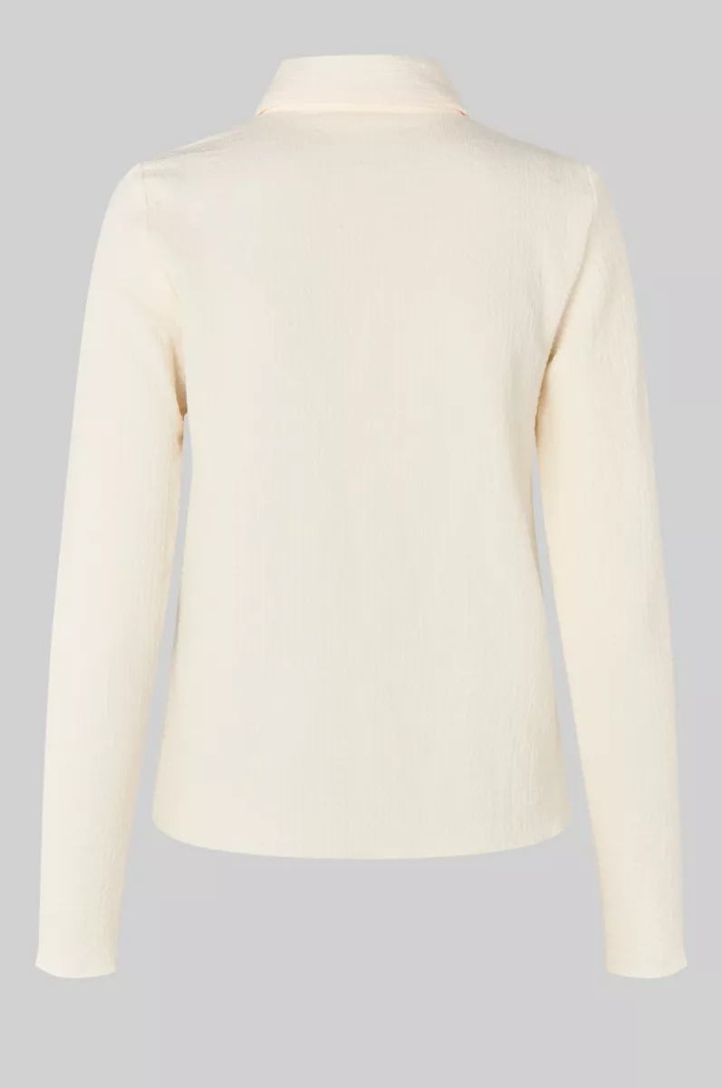 Second Female textured blouse. The blouse is made in lightweight fabric with waffle texture. Featuring a pointed collar and button and loop fastening. Wavy hem at sleeve ends and bottom hem.